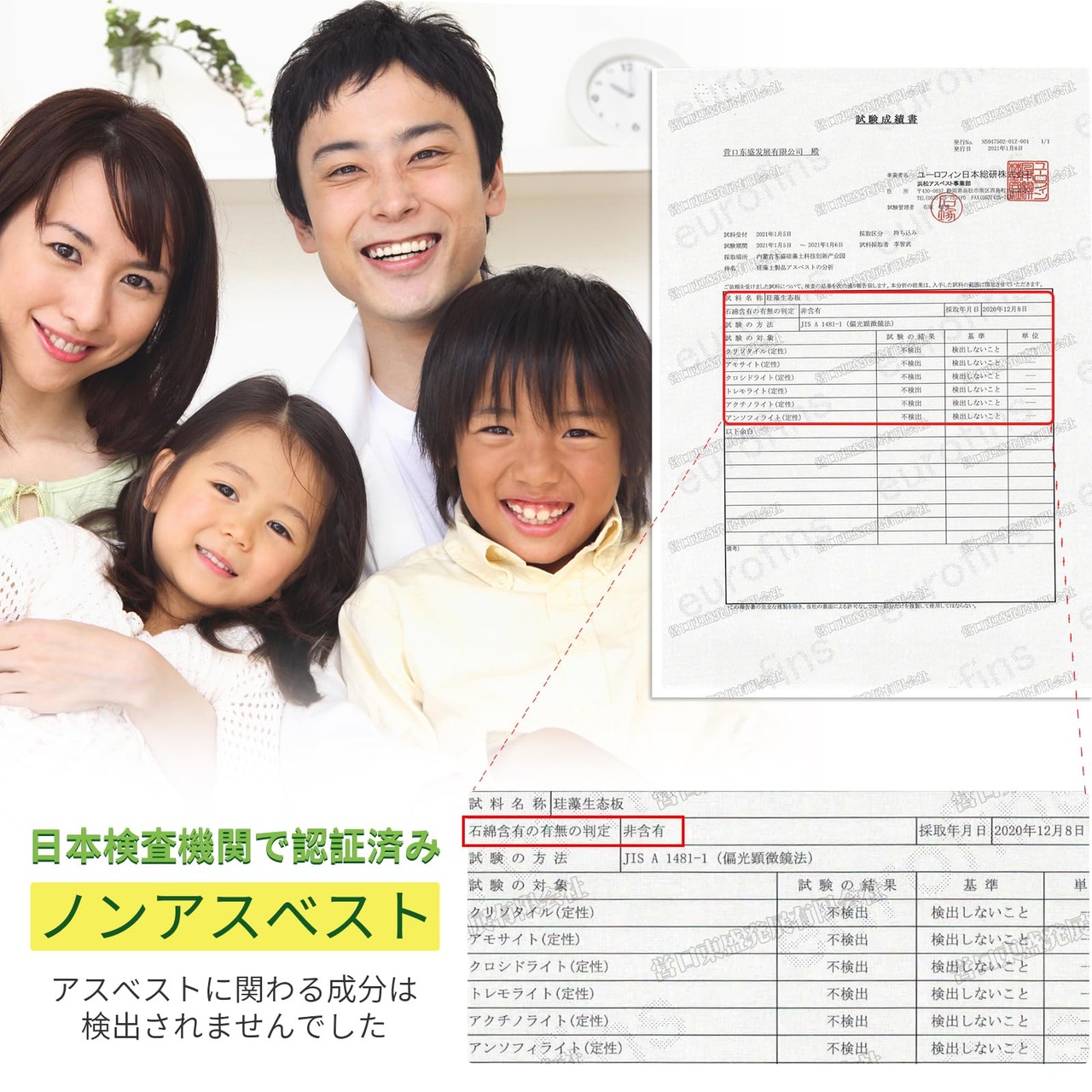 【アスベスト不使用】弊社で販売している珪藻土バスマットソフトは、アスベストなどの有害物質は含有されていません。安心してご使用いただけます。当製品は日本国内検査機関にて成分調査を実施しておりますが、アスベストは検出されておらず、高い安全性が証明されています。また、巻で包装のため、商品到着後重いものをしばらくの時間で圧して、平になった後再使用するのがおすすめです。万が一製品が傷あるや破損、不良品などの場合は、ぜひ弊社にご連絡ください。弊社の営業担当者はできるだけ早く対応します。ご満足するよう商品交換・再送、返品・返金などの対応をさせて頂きます。