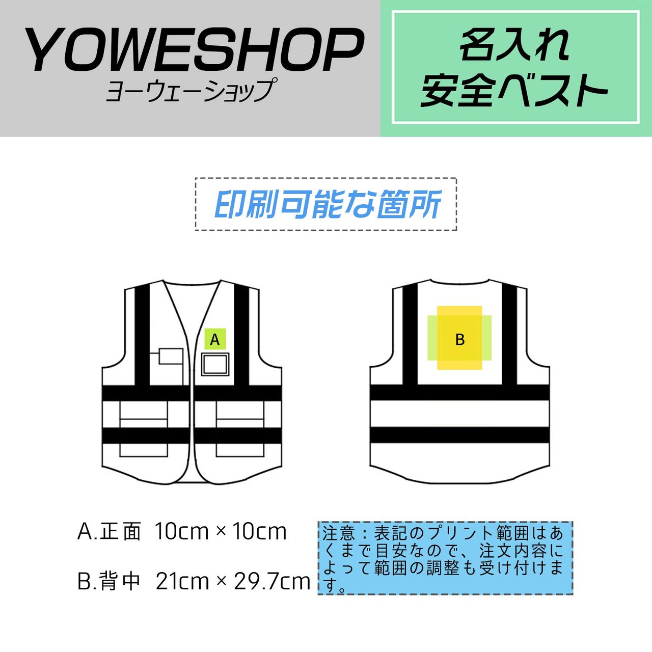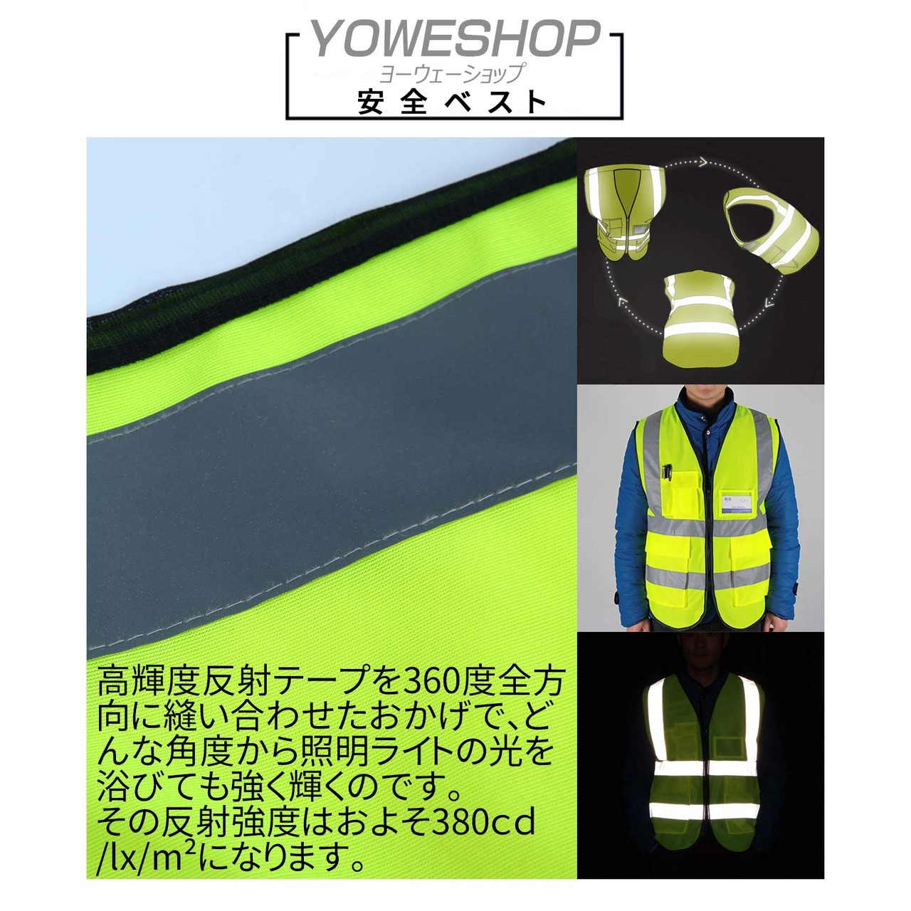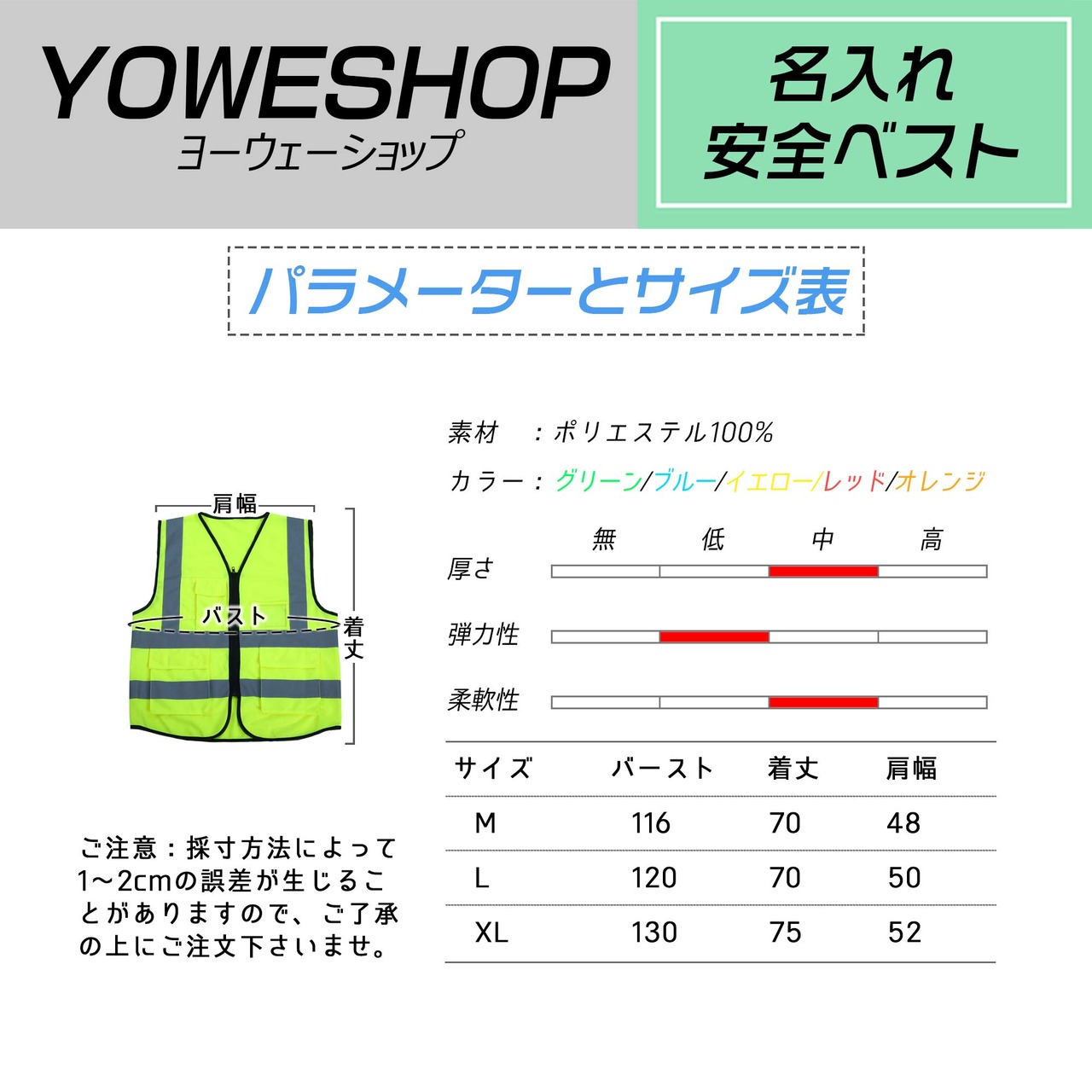 [YOWESHOP] 安全ベスト 名入れ 高視認性反射ベスト 夜間 作業 交通 警備 男女兼用 大きいサイズ 一枚からでもOK