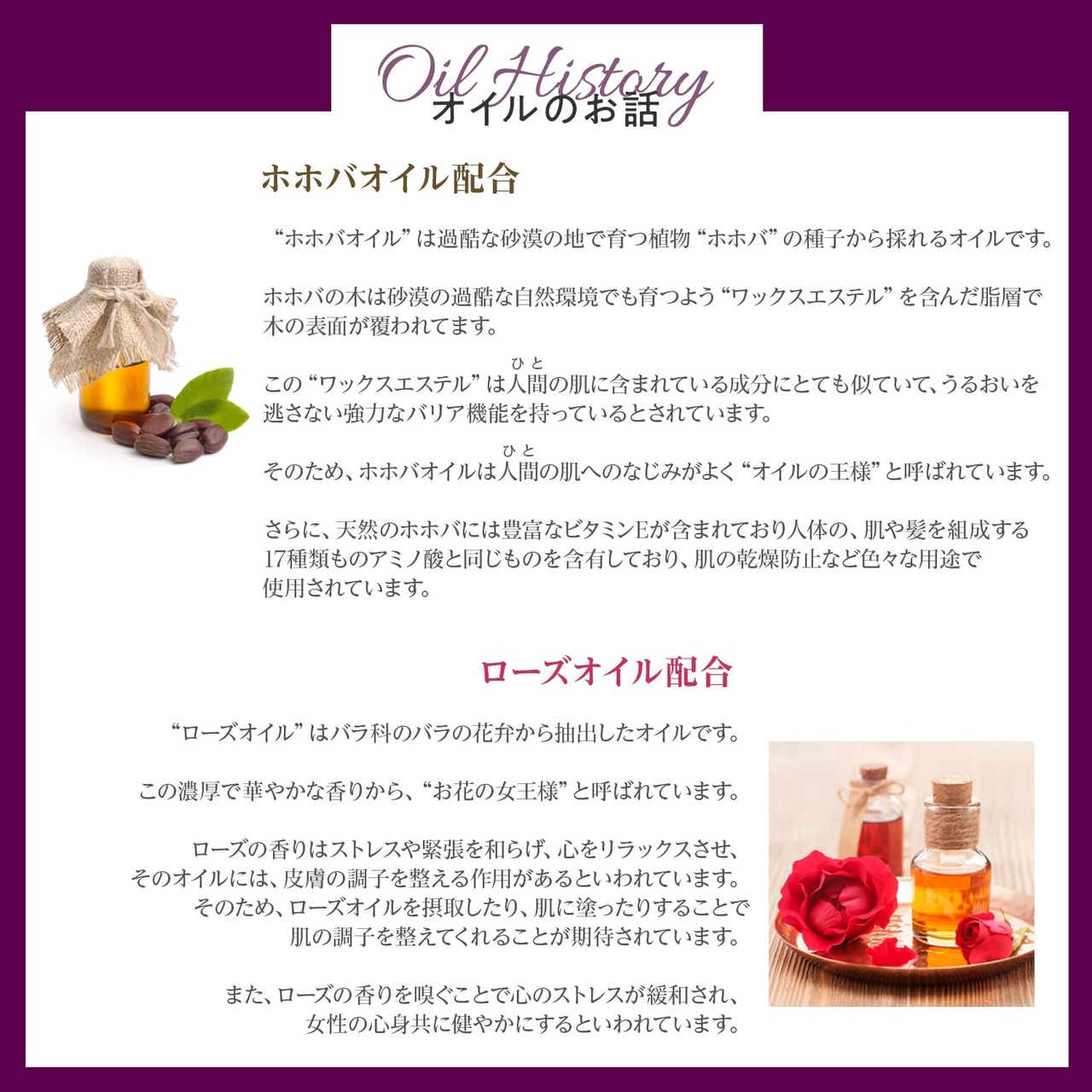 ロワイヤルホホバ(※) & エレガントローズオイル(※)配合