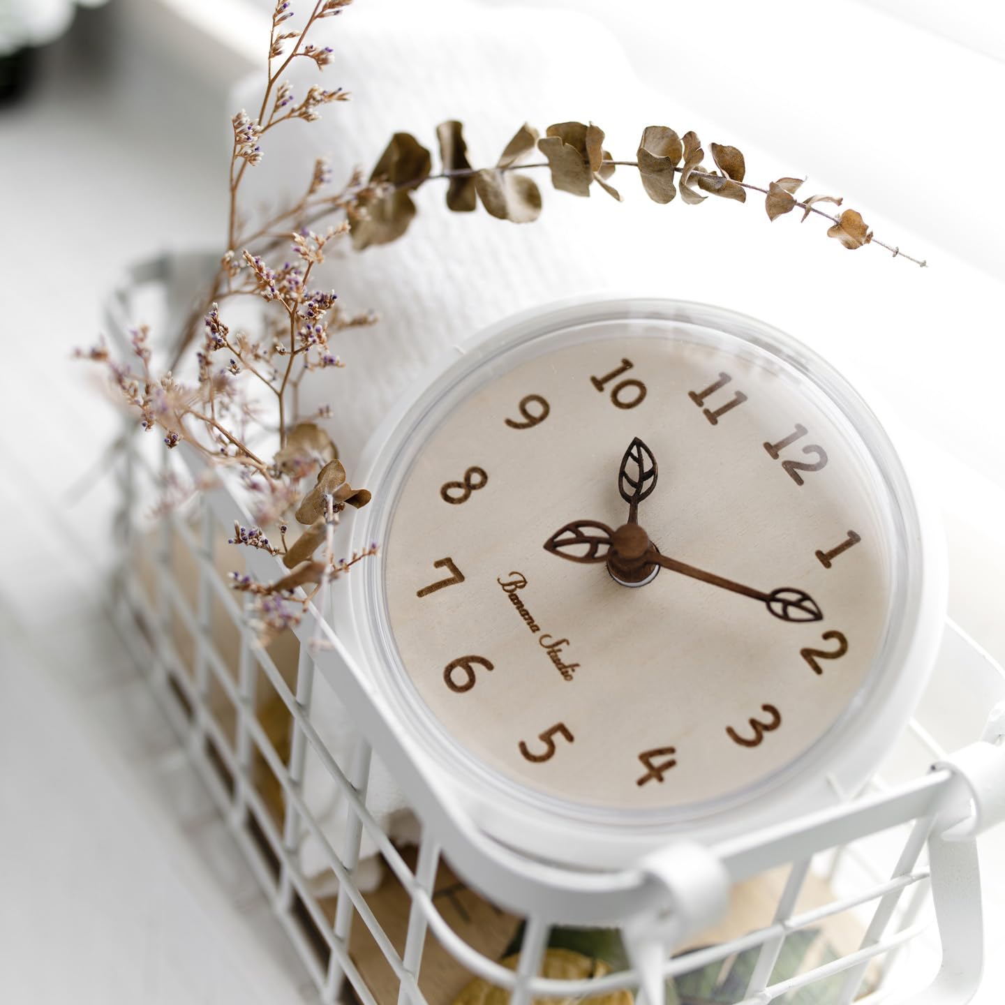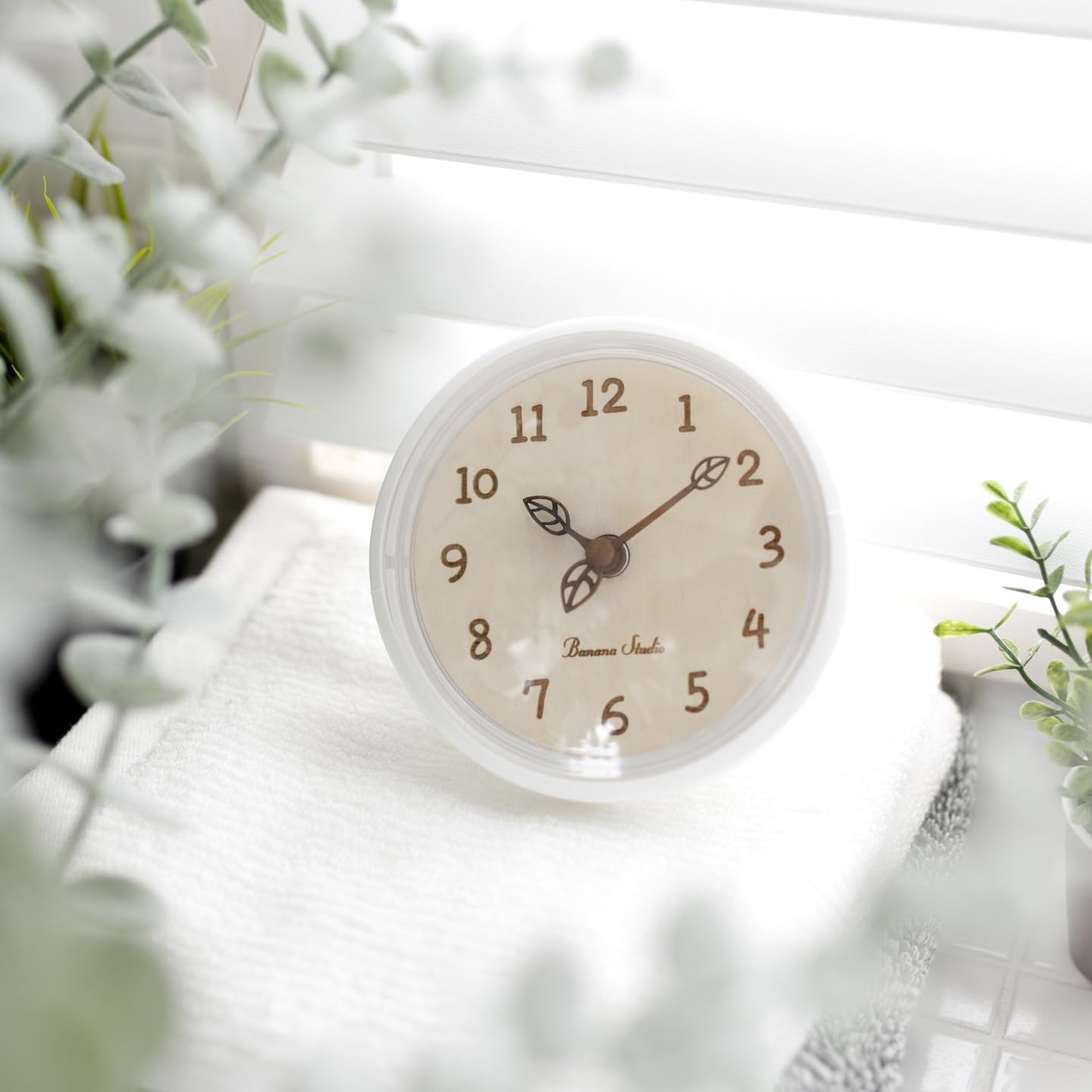アイビーウッド浴室時計【バナナ工房】置き時計 壁掛け時計 無音 12×12×6cm 181g 軽量 寝室 リビング オフィス 北欧
