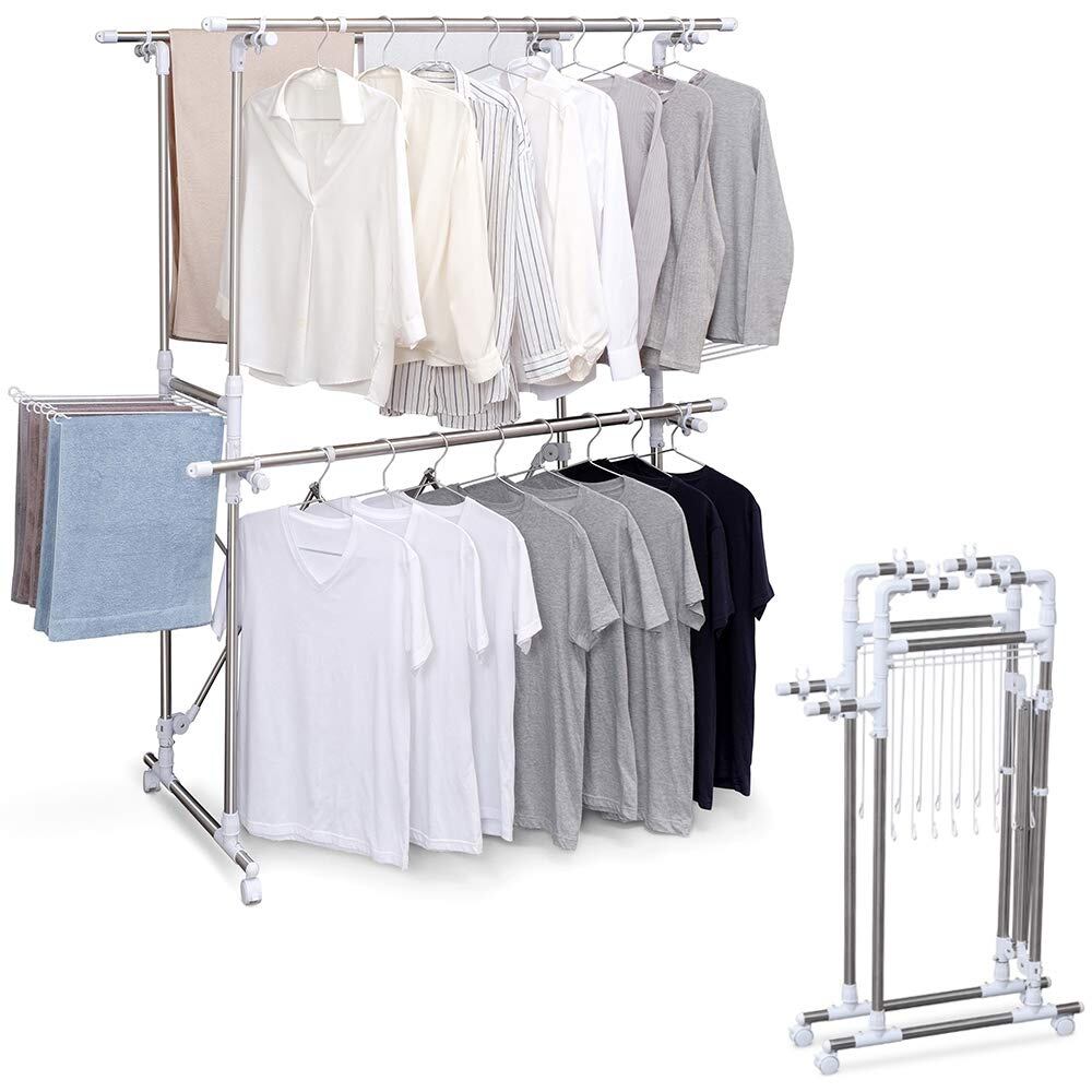 干す量やスペースに合わせて、幅も高さも調節可能な大型伸縮タイプの物干しです。