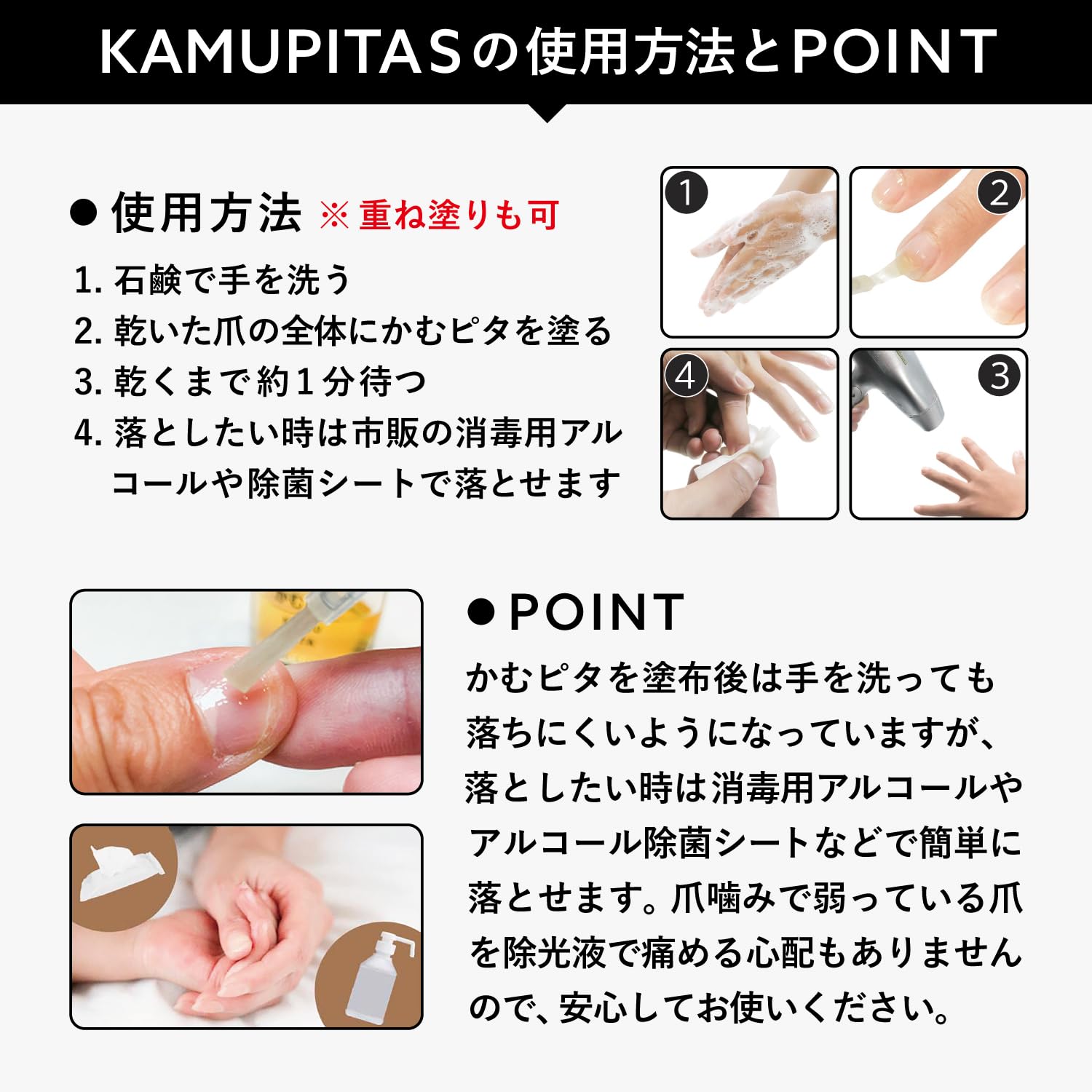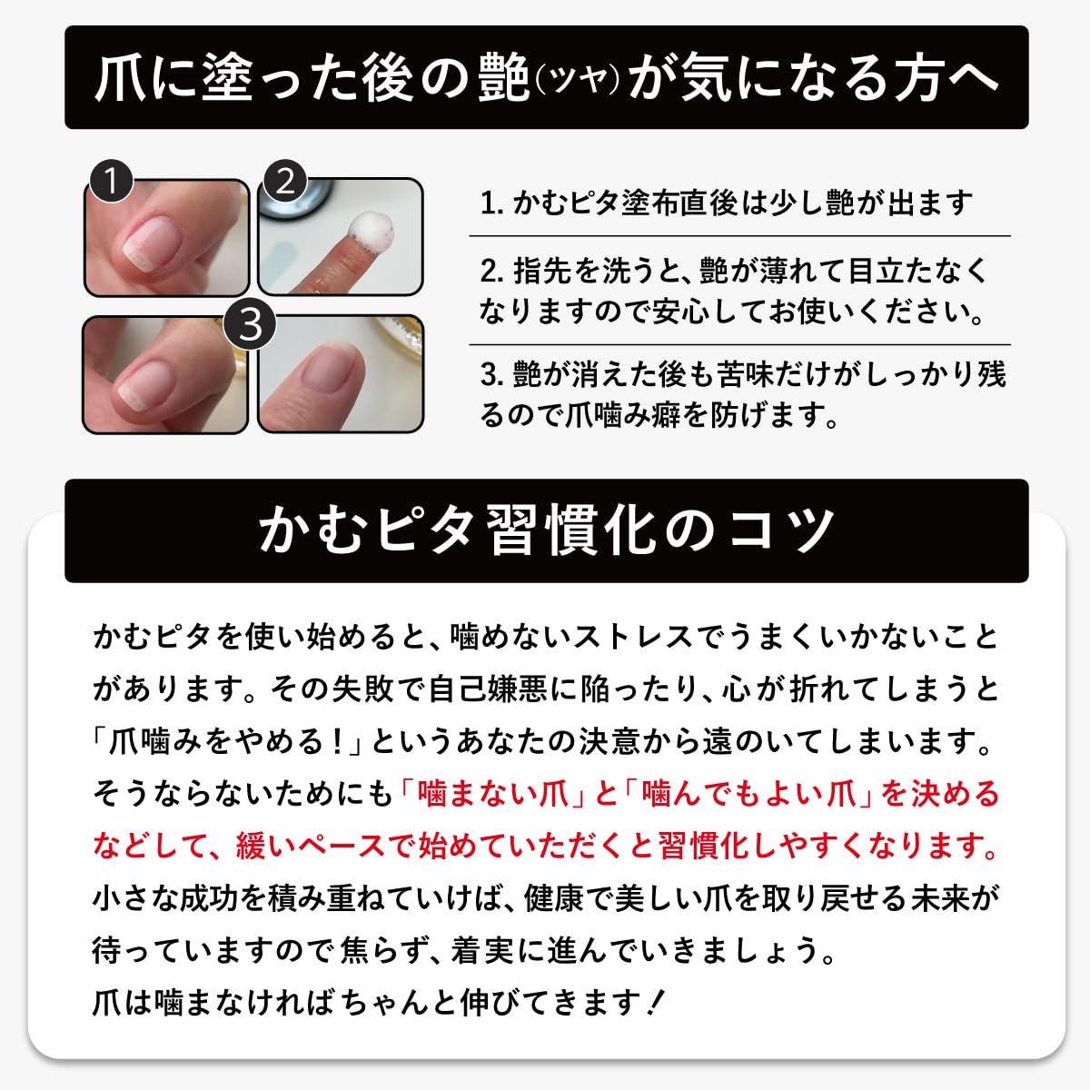 【シリーズ累計販売数300,000個突破】 かむピタSは【苦味成分最大!】シリーズ史上最も苦いマニキュアです。 頑固で長引く大人の爪噛み癖を防止し卒業をサポート。