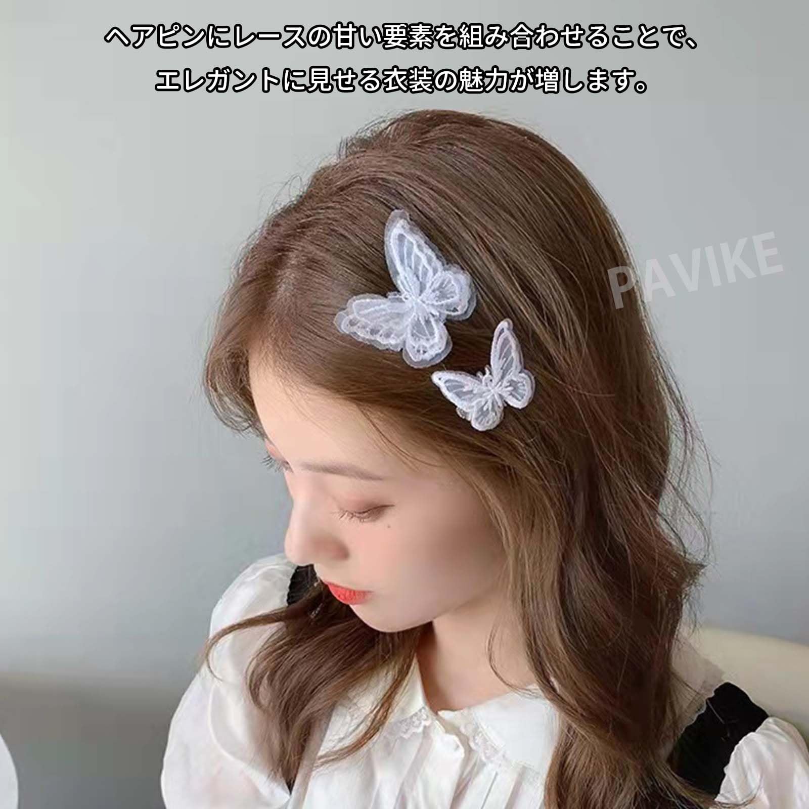 PAVIKE レースヘアクリップ(10個セット)蝶 ヘアピン 蝶 ヘアクリップ 可愛い ヘアアクセサリー レース 刺繍 リボン クリップ 蝶 髪飾り 前髪クリップ パーティー 子供 発表会 誕生日 結婚式 ホワイト