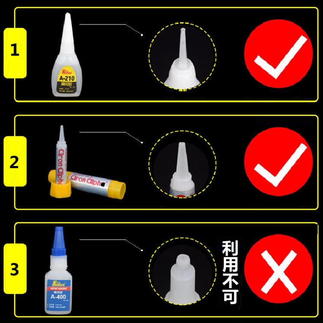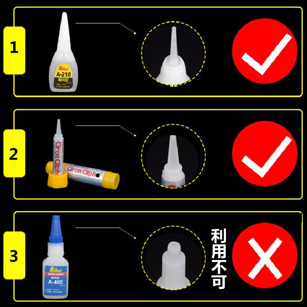 接着用大容量極細ノズルセット:瞬間接着剤の先端は必要に応じて切断でき、細い先端は流速を遅くし、液体の付着をより適切に制御できます。細いノズルにより接着剤が空気に触れる面積が減り、接着剤が長持ちします。