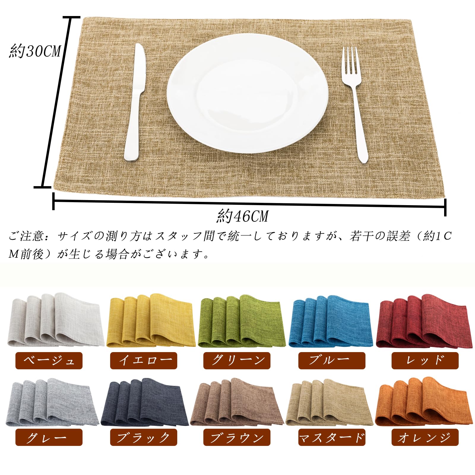 Senteria ランチョンマット布製 綿麻 マット 二層生地縫製 無地 和風 柔軟性 断熱 滑り止め お手入れ簡単 丸洗い キッチン 家庭用 レストラン用 4枚セット(マスタード) | kor Cat*