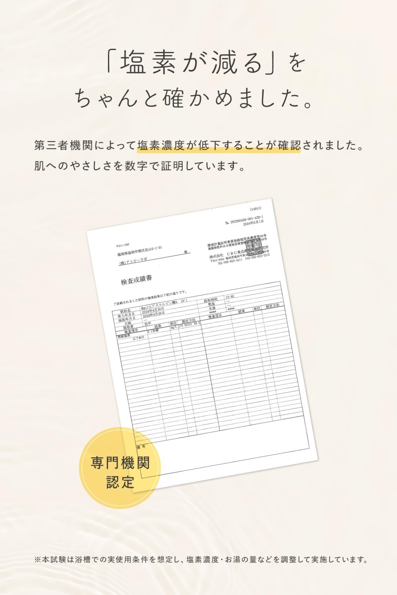 商品特長 肌に優しい成分で、塩素から肌を守れること