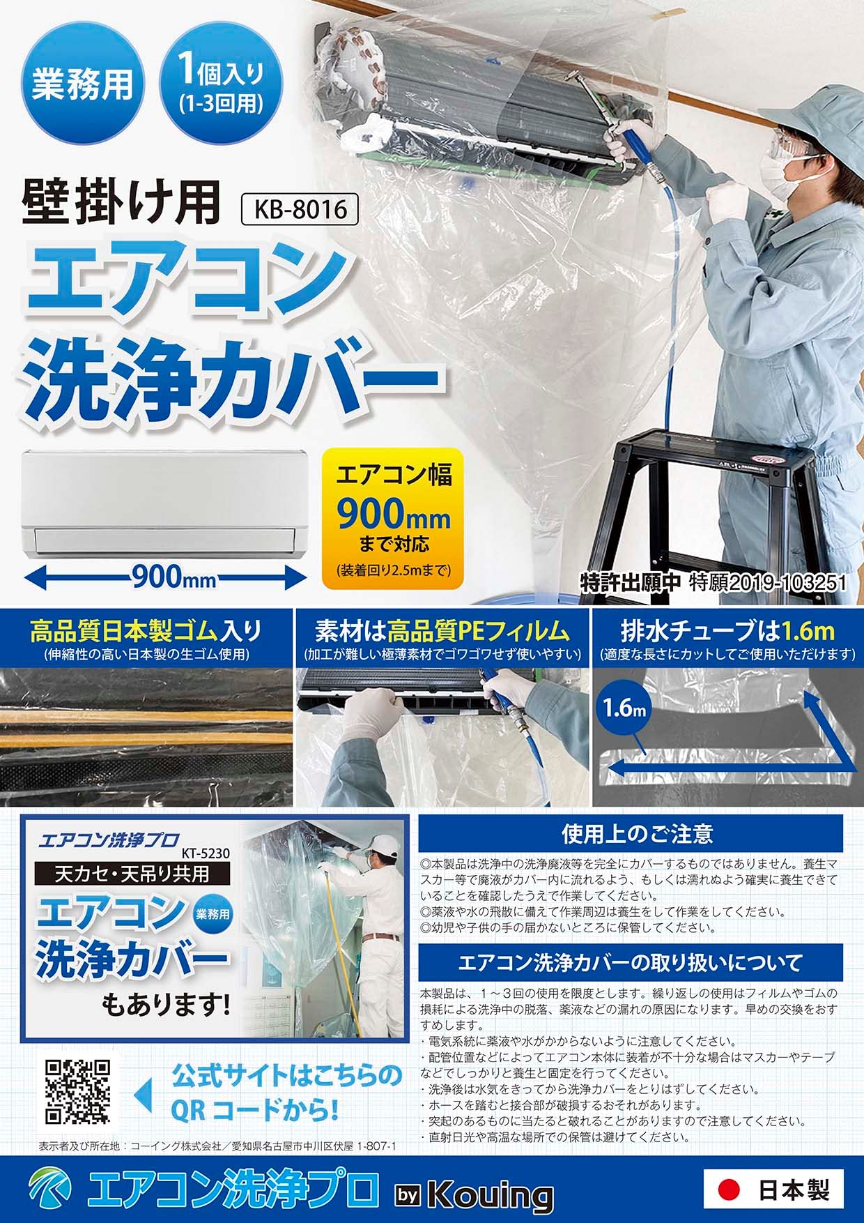 ■壁掛用 エアコン洗浄カバー KB-8016 ・ 装着部胴回り2.5m(伸縮ゴム付) ・エアコン幅900mmまで対応 ・材質 PEフィルム(t=0.08mm) ・1.6m排水チューブ付 PEフィルム(t=0.08mm)