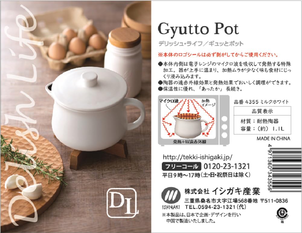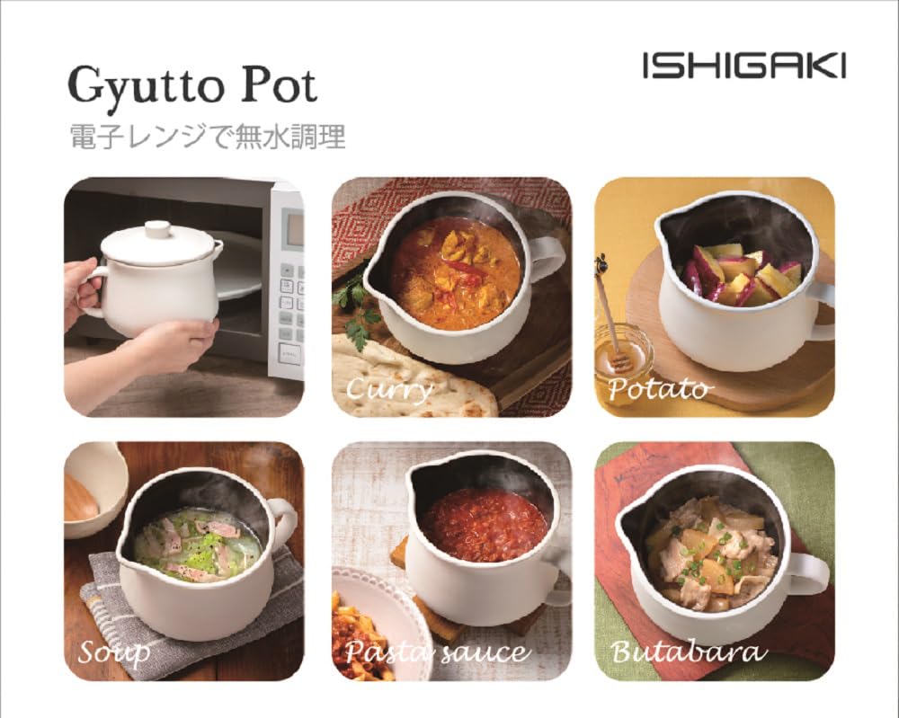イシガキ産業 調理 ポット ミルク ホワイト 約幅18cm×奥行14cm×高13.3cm 容量1.1L DLギュッとポット 無水 レンジ 手軽 簡単 4355
