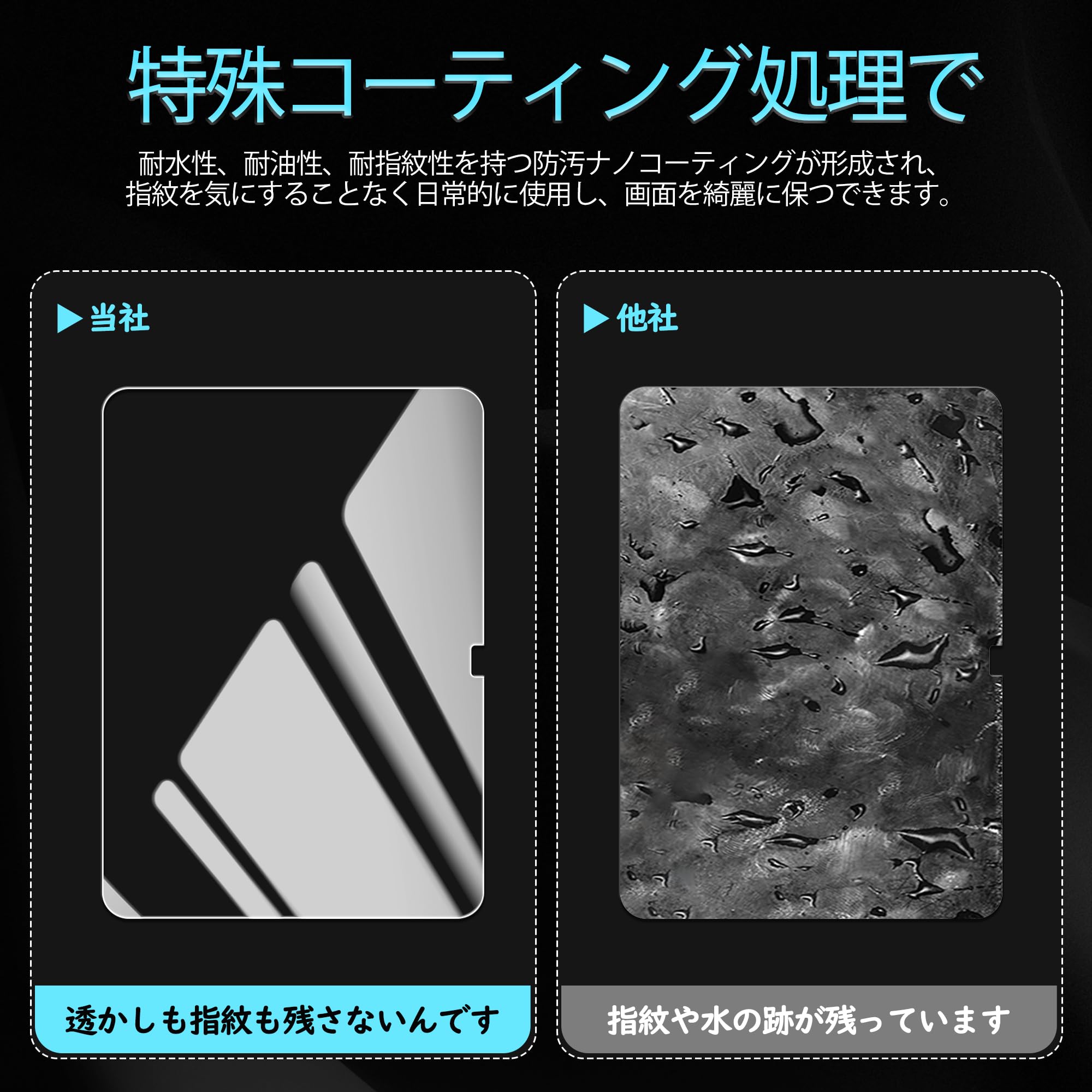 【汚れに強い】ipad 第10世代 フィルム 汚れ防止コーティングによって指紋・油・化粧品・水などの汚れが付き難く、付着した汚れもふき取りやすくメンテナンスも簡単です。いつもスクリーンを奇麗に保つも魅力的!