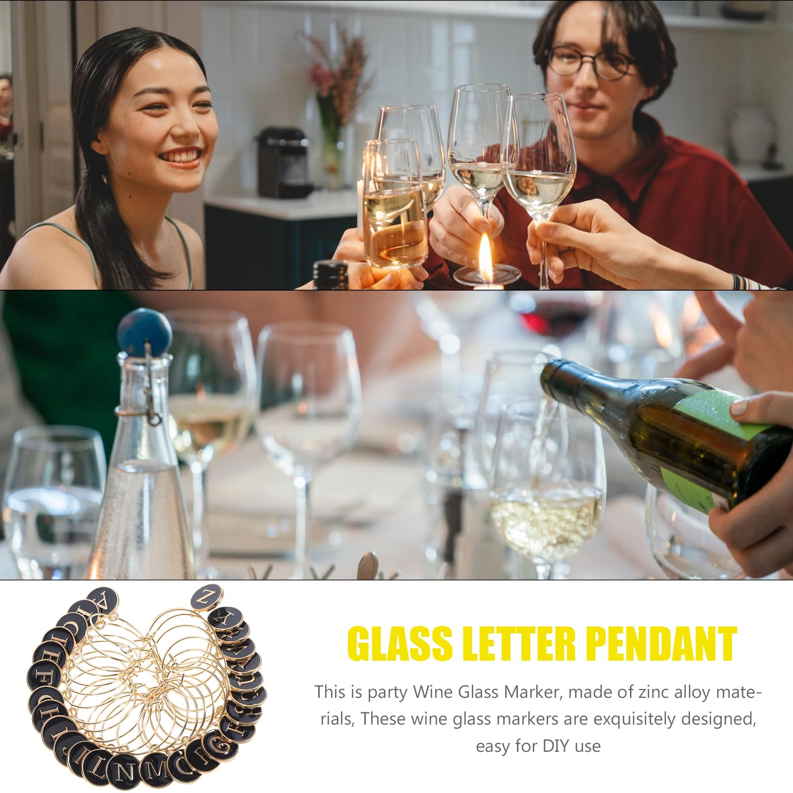 レターワインチャーム:diyワイングラスマーカーは、家庭での集まり、パーティー、さまざまなイベントに洗練された雰囲気を加えるのに最適です。