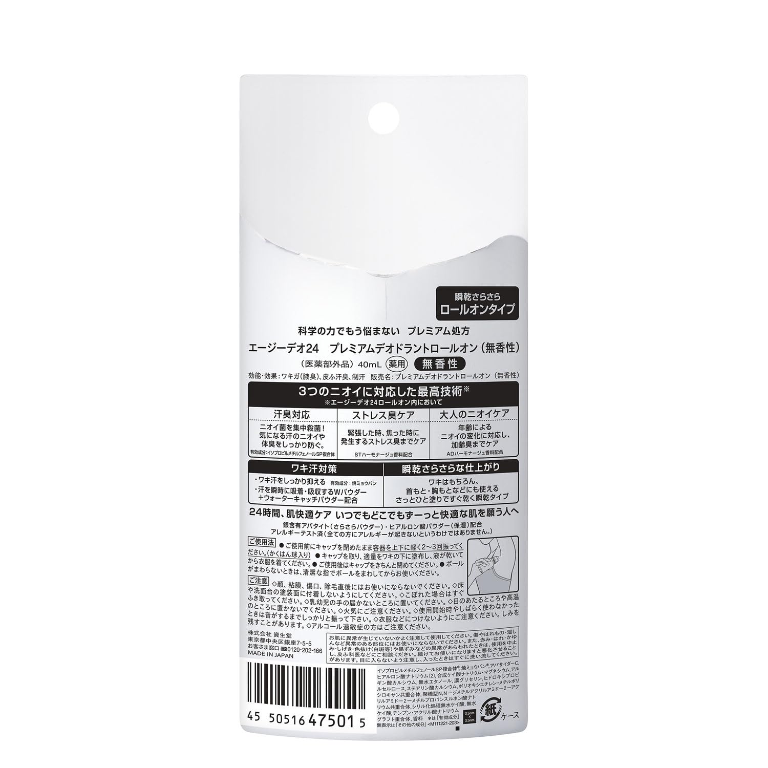 エージーデオ24 【まとめ買い】 プレミアムデオドラントロールオン(無香性)40mL×2個+おまけ ニオイ 殺菌 汗臭 ワキ 汗ジミ 加齢臭 制汗剤 デオドラント