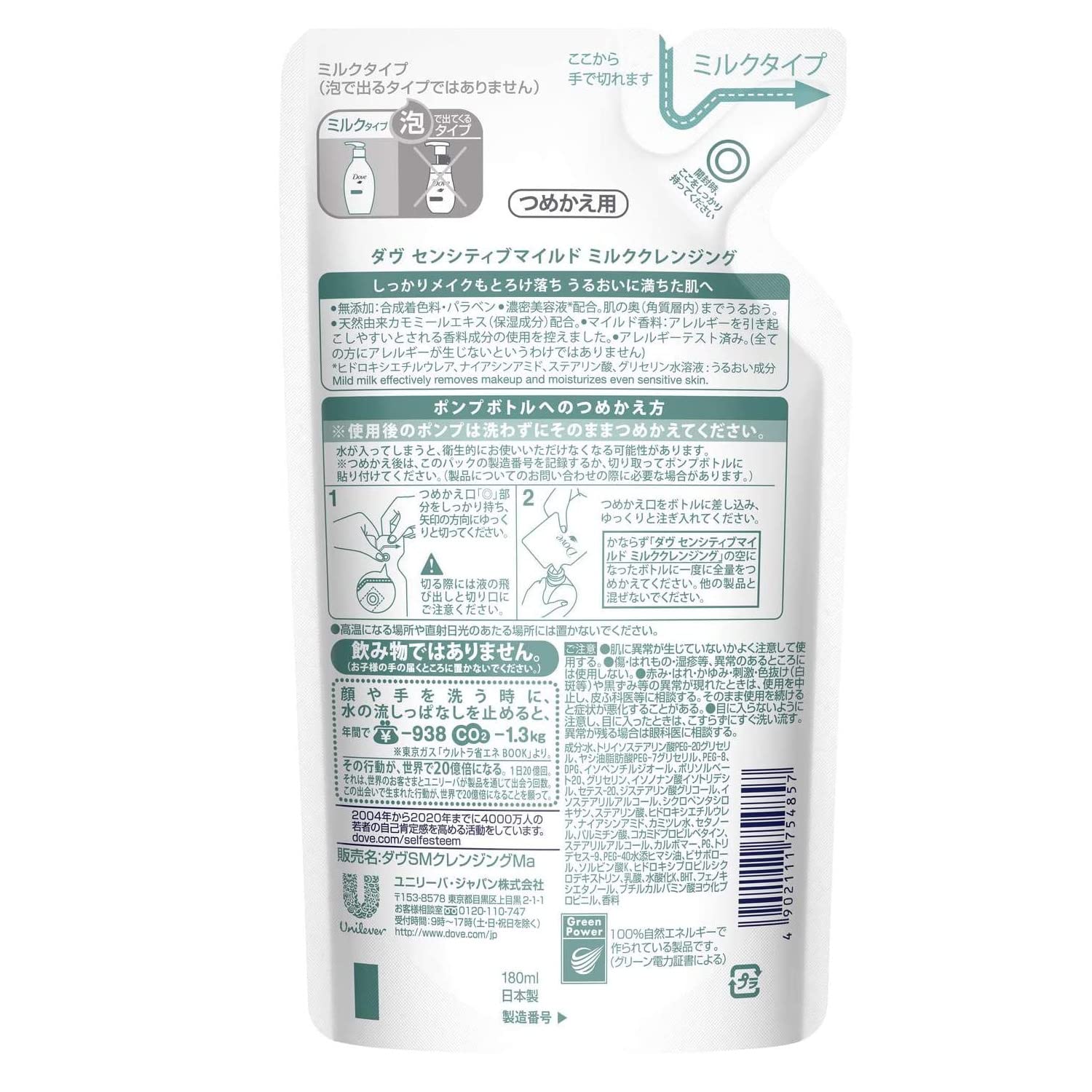 Dove ダヴ センシティブマイルド センシティブマイルド ミルククレンジング つめかえ用 敏感肌用 180mL
