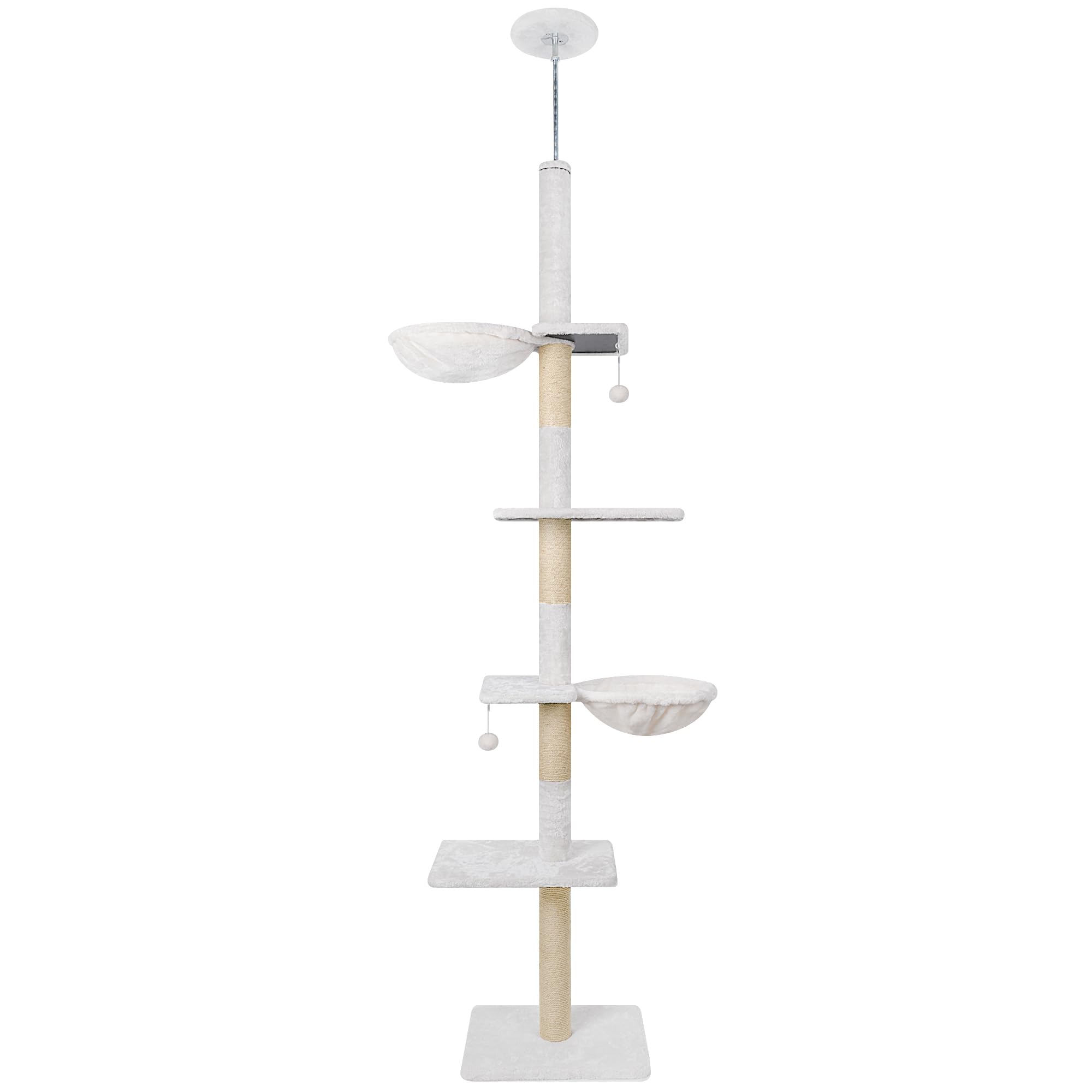 ROYPET キャットタワー 猫ツリー 爪とぎ 麻縄巻き 229~267CM高さ 突っ張り 木登り 省スペース ハンモック おもちゃつきベージュ