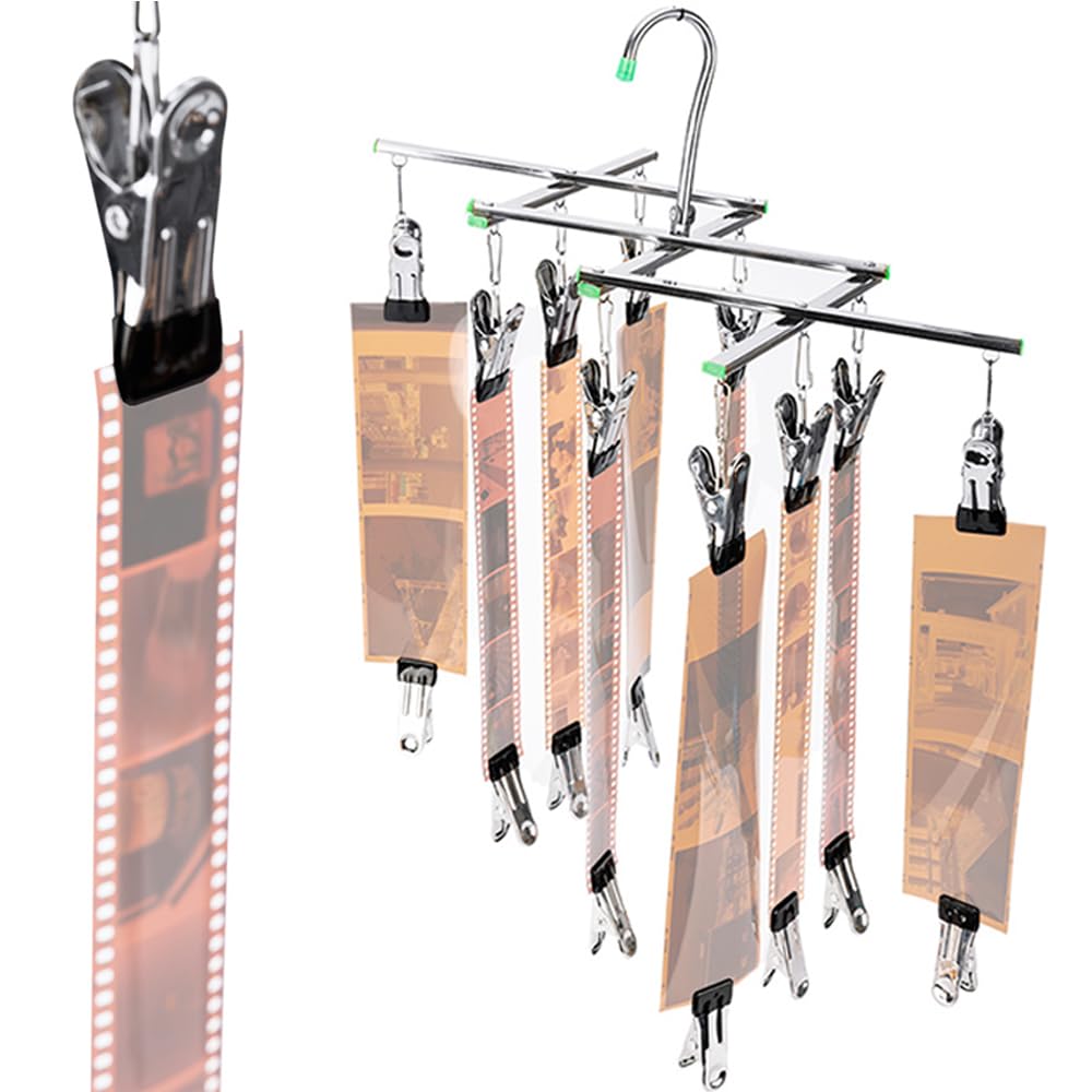 JJC 35mm 120mm フイルム ドライ ハンギング ラックフレーム フイルムを吊る ステンレス材質 滑り止め クリップ*10 フィルムに傷付けない クリップの間隔が調整可能 折りたたみ式 収納便利 35mm 120mm フィルムハンガー | kor Cat*