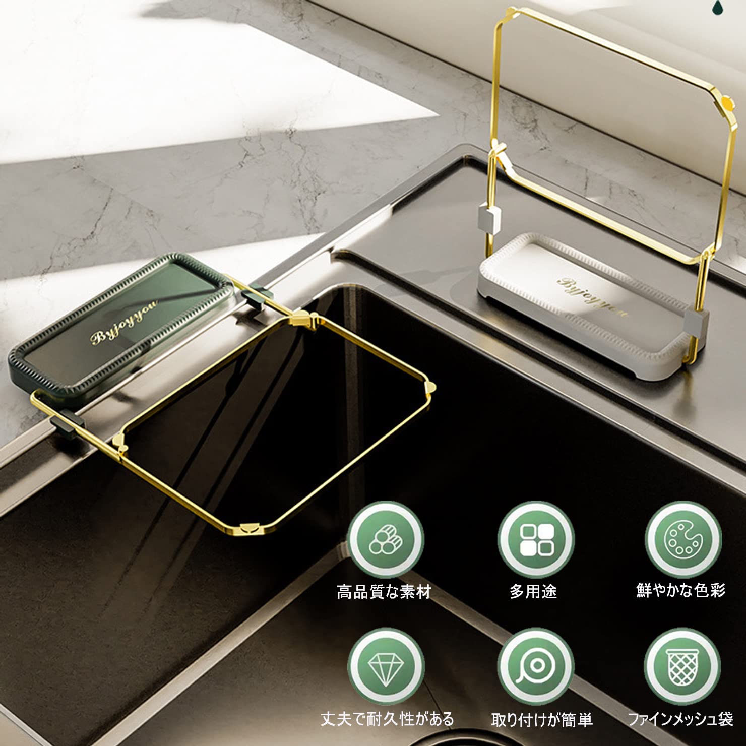 【省スペース】折畳設計により、シンクのスペース利用率が向上します,三角形ホルダーの末端は折り畳む事が出来る為、使わない時は立てて使えますし、雑巾干しに使えばサビ。シンクの毎日の使用に影響を与えずにスペースを節約,あらゆるタイプのシンクに適しています。スペースを節約し、キッチンをきれいに保ちます。
