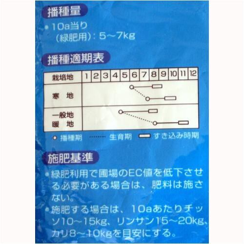 播種量10a当たり(緑肥用):5~7kg。下記の栽培表を参考に貴地の気候に合わせて栽培してください。