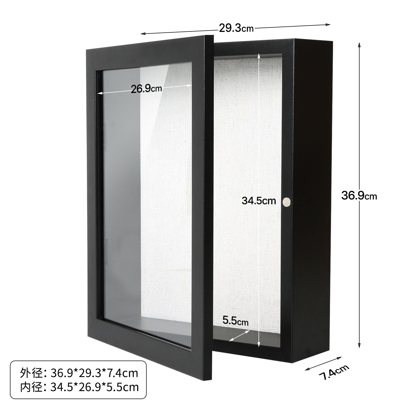 Telarana 額縁 写真立て フォトフレーム 標本箱 シャドウボックス 立体額 ボックスフレーム パネルフレーム ポスターフレーム マグネット付き ブラック「外径369 x293 x74 MM 内径345 x269 x54.5 MM」