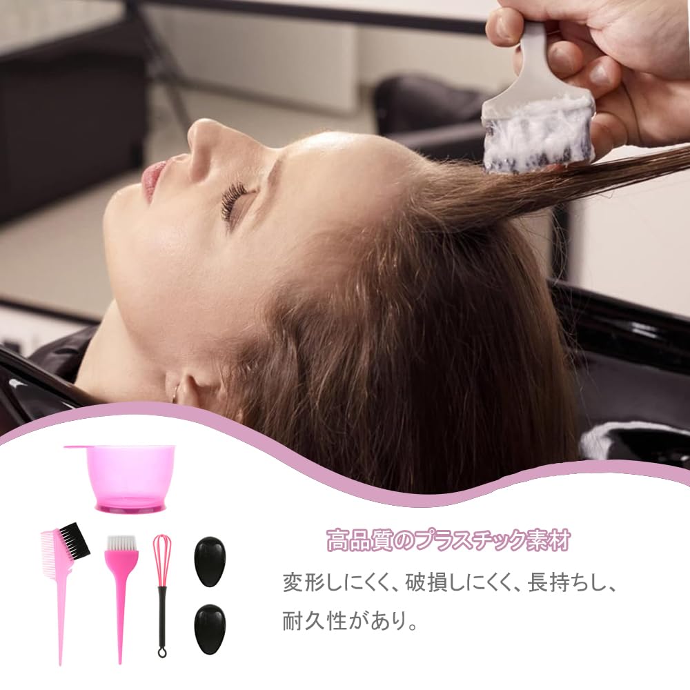 BTtime ヘアカラー 5本セット 道具 セット ヘアダイブラシ ボウル ヘアダイカップ イヤーキャップ 付き 男女兼用 便利 サロン セルフヘアーカラーセット 家庭用 美容院 プロ用 DIY髪染め用 (ピンク)