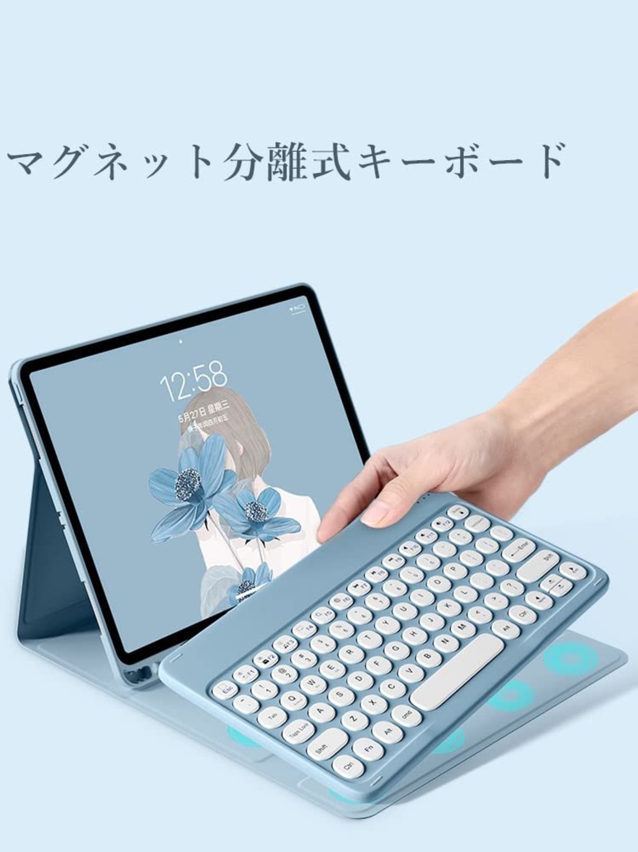 iPad キーボードケース マウス付き 可愛い アイパッド Bluetooth キーボード 丸型キー 2色配色 カラーキーボード ケース カバー マウス レディース 分離式 ペンシル収納 女性向け