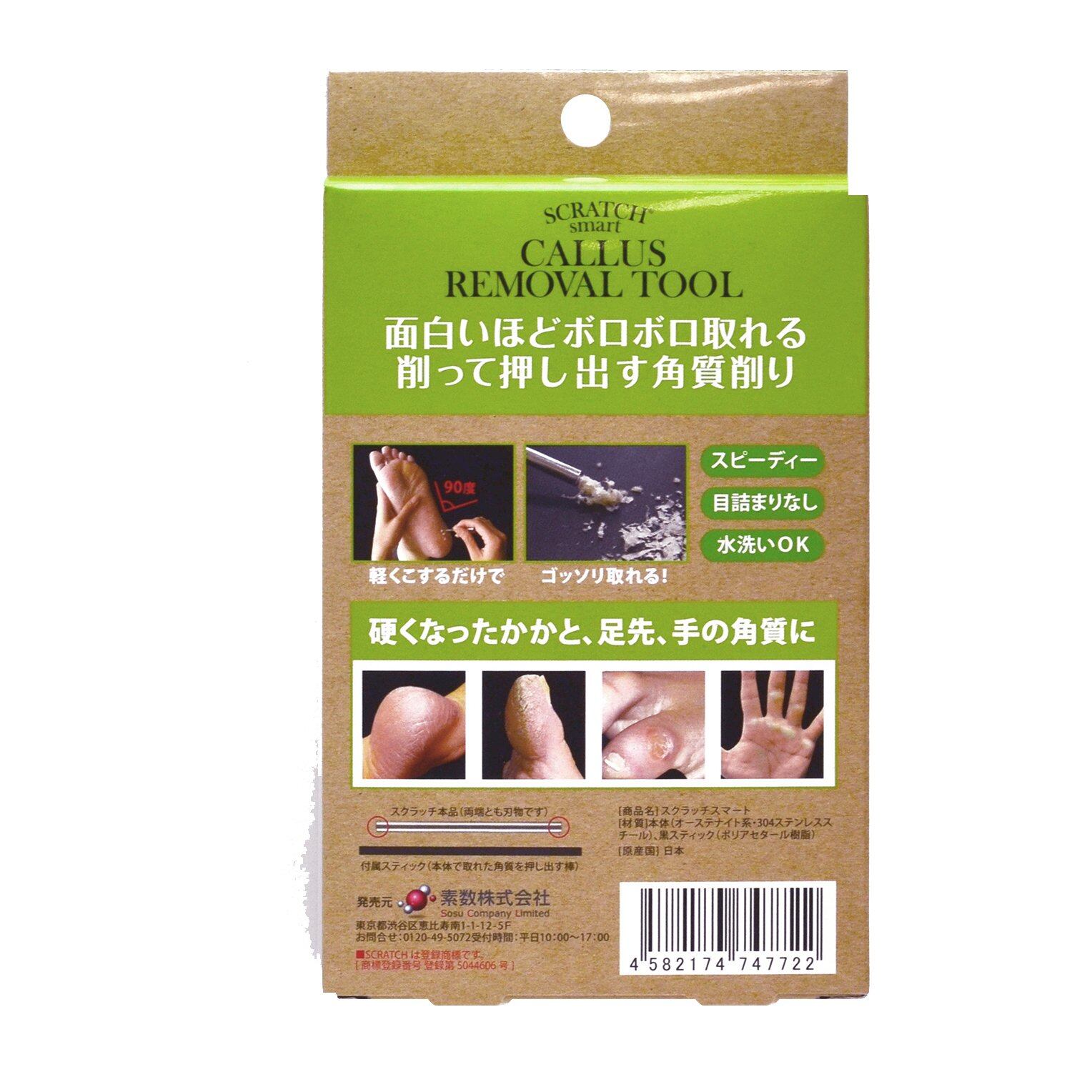 ・本品は両端が刃物ですので手を切らないように注意してください。 ・本品は皮膚に対して鋭い角度に傾けて使わず、必ず常に90度の角度でご使用ください。・本品をグルグルまわしたり、強く押し付けたりしないでください。適度に力を入れたりまわしたりすると皮膚を切って傷つける可能性があります。 ・削れ具合には個人差があります。角質が取れない場合には無理に強くこすり過ぎないようにしてください。 ・すり傷、切り傷などのケガをしている部分、あざになっている部分に本品を使用しないでください。 ・自分で見ることができない部分のご使用はおやめください。 ・使用中に炎症、腫れなどの異常があらわれたときには、直ちに使用を中止し、皮膚科医師等にご相談ください。 ・目的以外の使用用途ではご使用にならないでください。 ・削れ具合は少しずつ弱まります。 ・使用後は本品の使用部位と肌に触れたすべての部分をきれいに洗い流し、十分乾燥させてください。 ・本製品を落とした場合、刃を損傷することがあります。そのような場合は新しい製品をご使用ください。 ・お子様のご使用は避けてください。 ・幼児の手の届かないところに保管してください。 ・角質が筒内に溜まりすぎると押し出せなくなる場合がありますので、付属の黒い棒でこまめに角質を押し出してください。 ・糖尿病の方、エイズの方、化学療法を受けている方は本品使用について専門の医師にご相談ください。