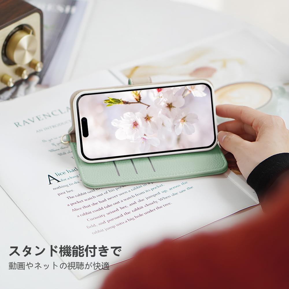 iPhone 15 ケース 手帳型 スマホケース iPhone15 財布型 カバー カードポケット付き いphone15 ケース 軽量 薄型 全面保護 耐衝撃 贈り物 あいほん アイフォン15 ケース カード収納 スタンド機能 横置きスタンド機能 高級PUレザー 上質な手触り アイホン15 (iPhone 15 6.1 inch対応) - グリーン