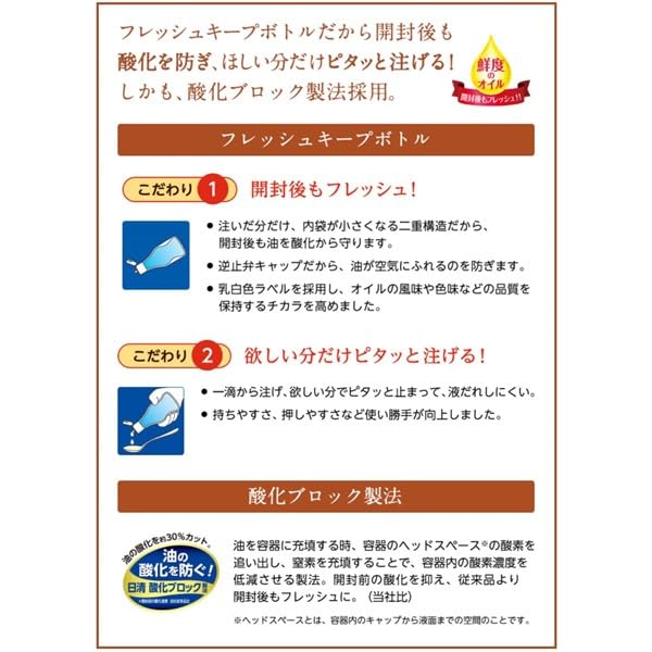 早摘みグリーンオリーブと本場職人の技にこだわりました。BOSCOエキストラバージンオリーブオイルは、料理の味をひき立てるフレッシュな風味が特長です。またオイルを酸化から防ぐフレッシュキープボトルだから開封後もフレッシュ。一滴から注げて、液ダレしにくいので、卓上で使いやすいです。