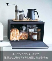 キッチンカウンターなどで雑然としがちなパンやお菓子、調味料などを隠しながら美しく収納できる収納ケースです。