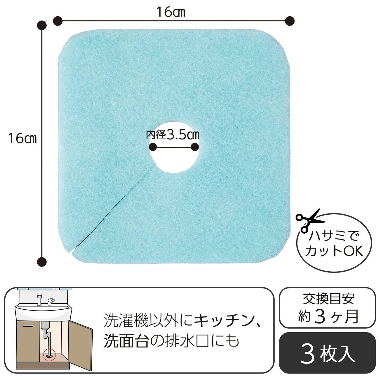 コモライフ 排水口カバーフィルター3枚入 ポリエステル 日本製 抗菌 消臭 簡単装着 裏面微粘着加工 のり残りしない 洗濯機 排水溝 フィルター カバー排水 カット可 ブルー