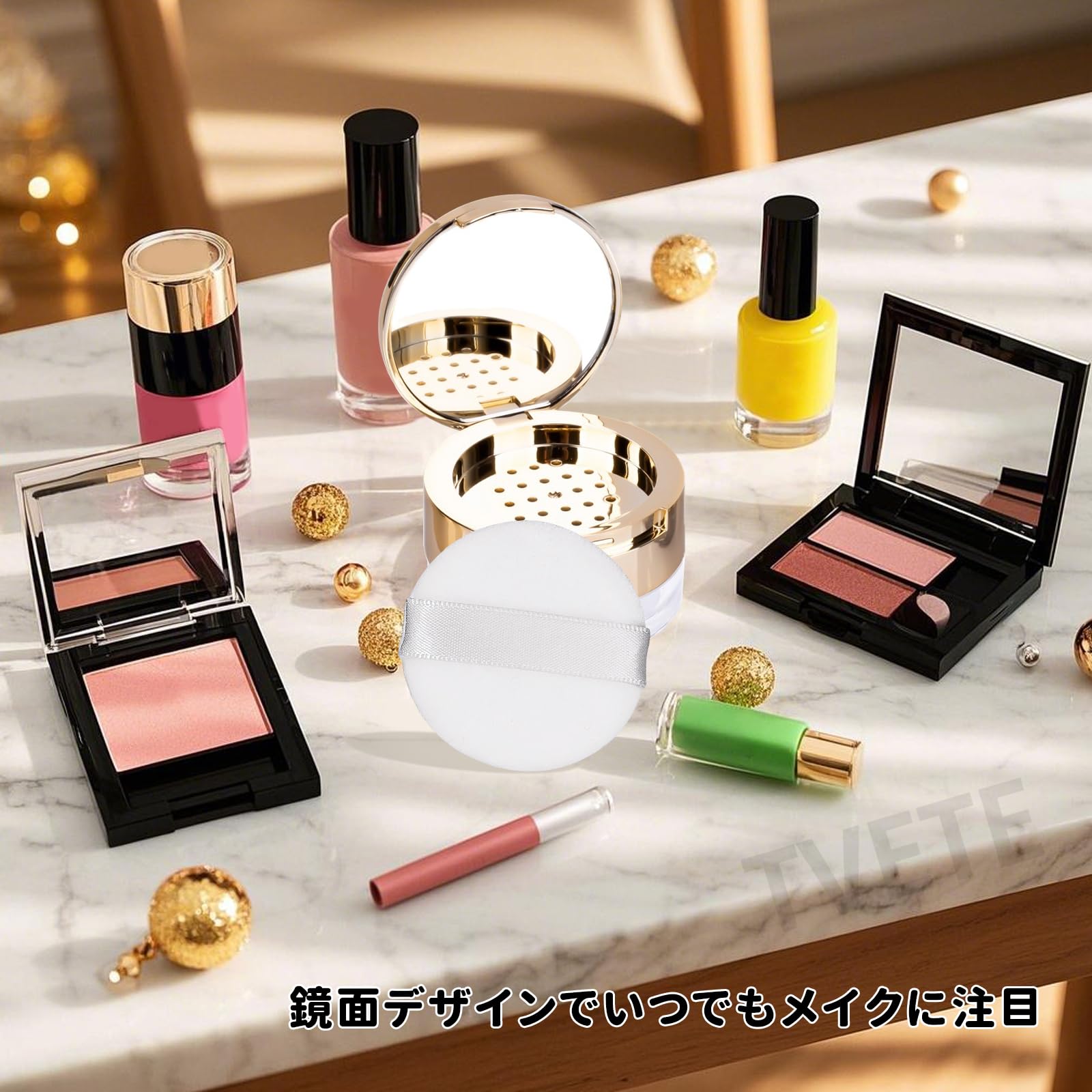 TVETE パウダーケース ミニ 携帯 コンパクトパウダーケース 蓋付き 【6g】 金色 ミニ パフ付き 鏡付き ミラー付き フェイスパウダー ケース ルースパウダー ケース ゴールデンシェル 小さく パウダー容器 旅行 小分け 携帯便利