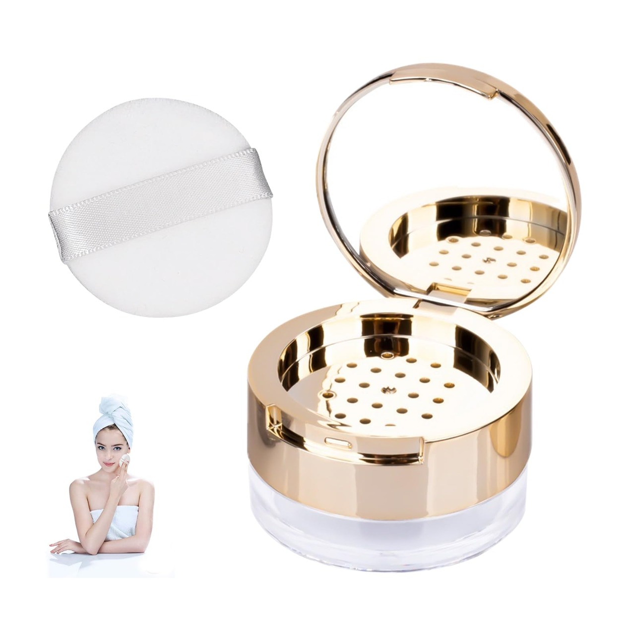 TVETE パウダーケース ミニ 携帯 コンパクトパウダーケース 蓋付き 【6g】 金色 ミニ パフ付き 鏡付き ミラー付き フェイスパウダー ケース ルースパウダー ケース ゴールデンシェル 小さく パウダー容器 旅行 小分け 携帯便利 | kor Cat*