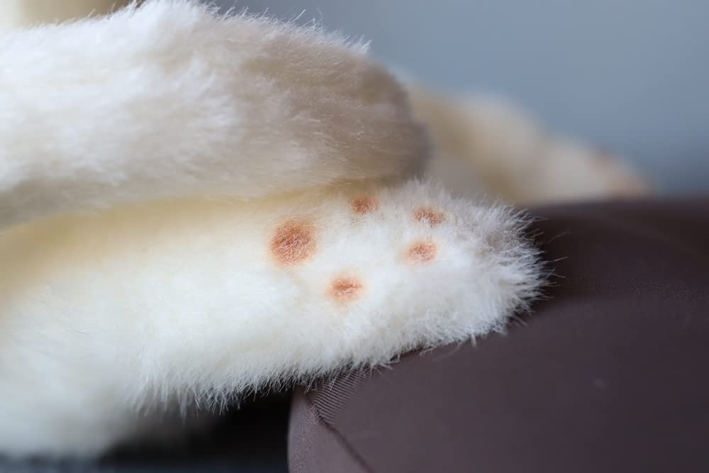 ●通常おしりについている童心オリジナルタグをリボンとして当店限定でお付け致します。首に巻いてリボン結びすると可愛らしくなりますよ。どのカラーのリアルネコにも合います。