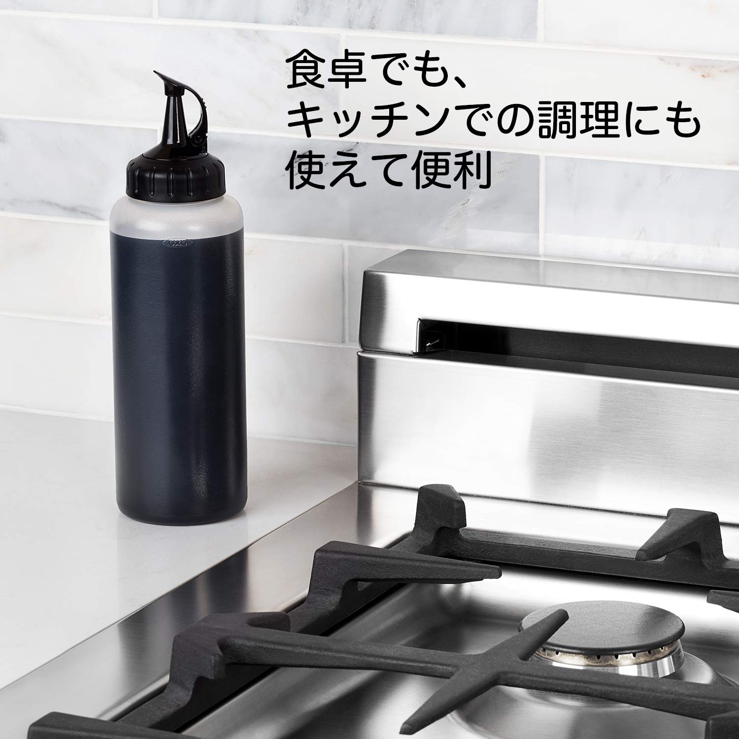 OXO オクソー 調味料 入れ スクィーズ ボトル 片手で 開け閉め 液だれ しにくい 押し出しやすい ポリエチレン 目盛り 付き 350ml 中サイズ