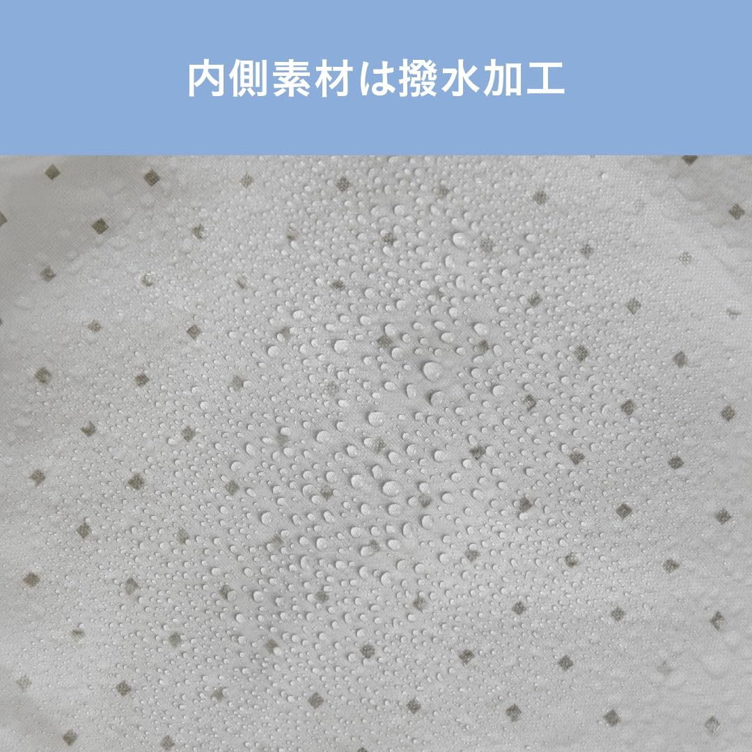 内側の素材は撥水加工されているので汚れにくく、保冷効果もあるので、夏の暑い日も安心です。