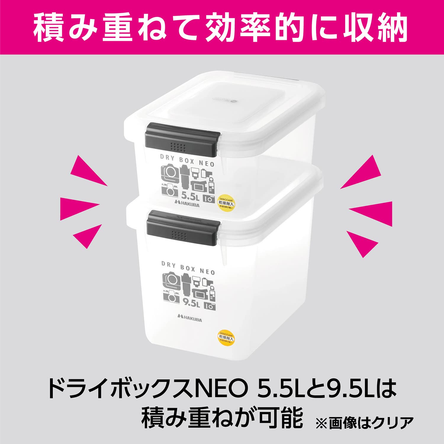 5.5Lと9.5Lサイズは積み重ねることが可能。スペースの有効活用に。