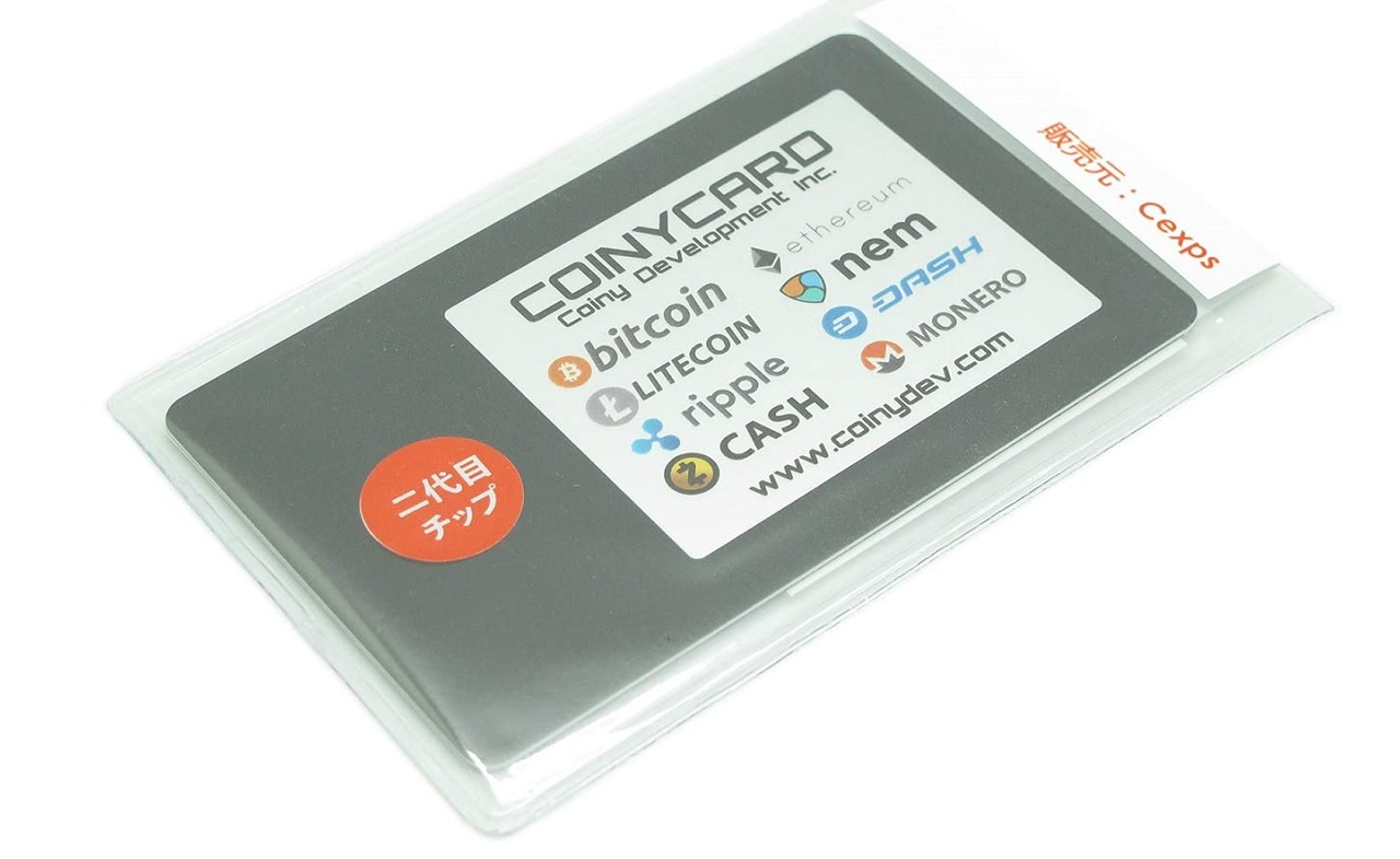 Coiny Firmware appletがプリインストール済み CoinyCard 1枚です(専用のICカードリーダは付属しません) 仮想通貨のハッキング対策(ICカードで暗号化) appletの開発用API https://www.coinycard.com/coinycard Windows標準のドライバで動作するので、別途ドライバは不要規格 : 寸法:85.6mm (L) x 54mm(W) x 0.76mm(H) データ使用Full 64KB of EEPROM メモリー ISO 7816 Parts 1, 2, 3, 4, 8, and 9対応 T=1 protocol対応 セキリティシールを貼ってありますので開封後は返品をお受けできません