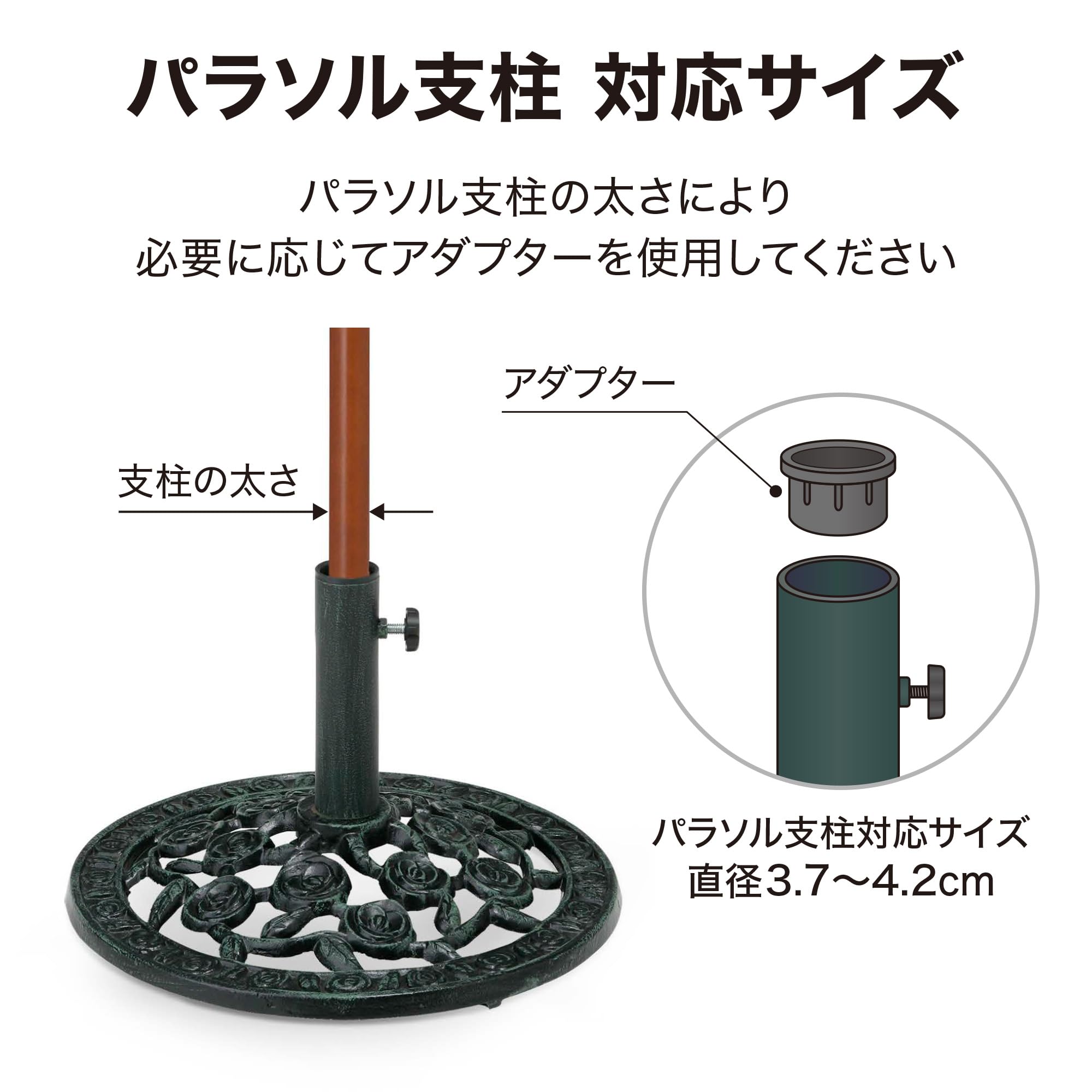 タカショー 日よけ ベース パラソルベース 青銅色 ローズ S ガーデン ファニチャー アンティーク スタイル 鉄鋳物 スチール製 バラのモチーフ 鋳鉄 スチール ポリプロピレン PAB-21SRV