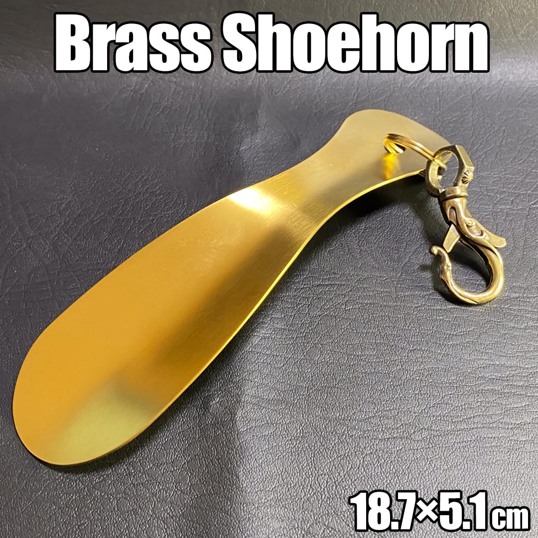 携帯して持ち運びやすい真鍮製の短ヘラ靴ベラになります。 美しい真鍮製を使用し、キーホルダーとしても使えるフック付き