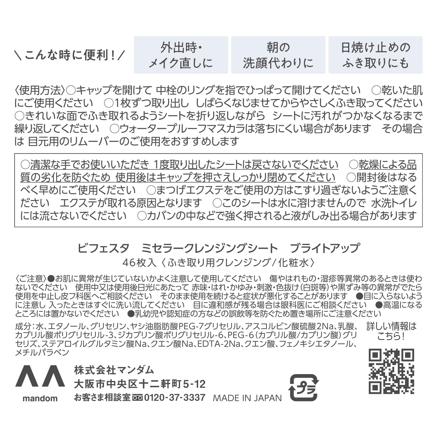 Bifesta(ビフェスタ) ビフェスタ うる落ち水クレンジング シート ブライトアップ ワイプ ホワイト セット 46枚×3個