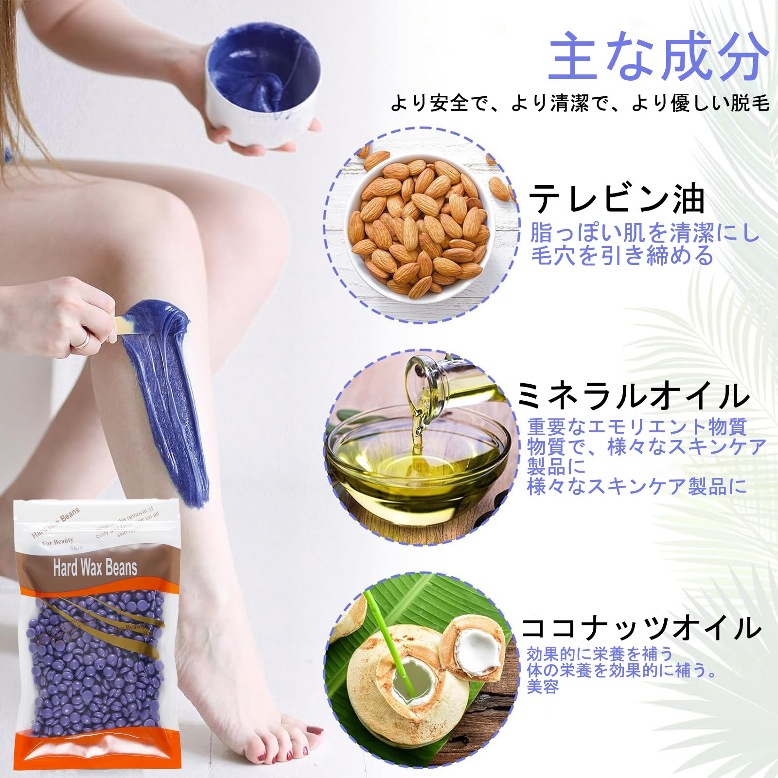 【製品特徴】操作が簡単で、清潔で、刺激がなく、使い捨てで肌を傷つけない、手順が簡単:サロンに行くのではなく、自分の時間で行うことができます!自宅でほぼ無痛、無ストライプの完璧な脱毛ワックスビーズセットを楽しむ。硬ろうビーズは無痛脱毛ができ、非常に柔軟で、除去しやすい。