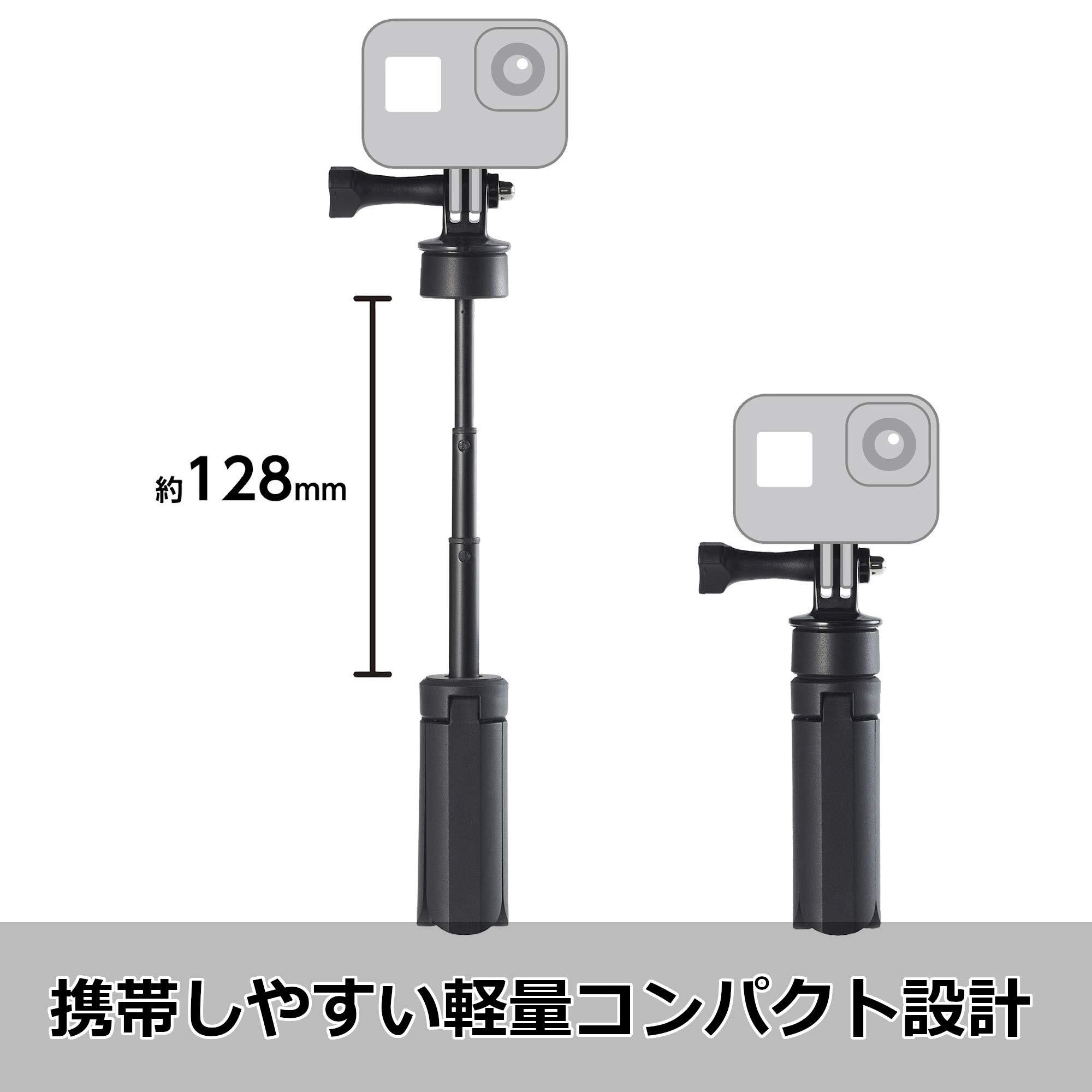 三脚としても、三脚の脚をたたんで自撮り棒としてもご使用いただけます。スマートフォン・アクションカメラ・コンパクトデジタルカメラに対応しています。