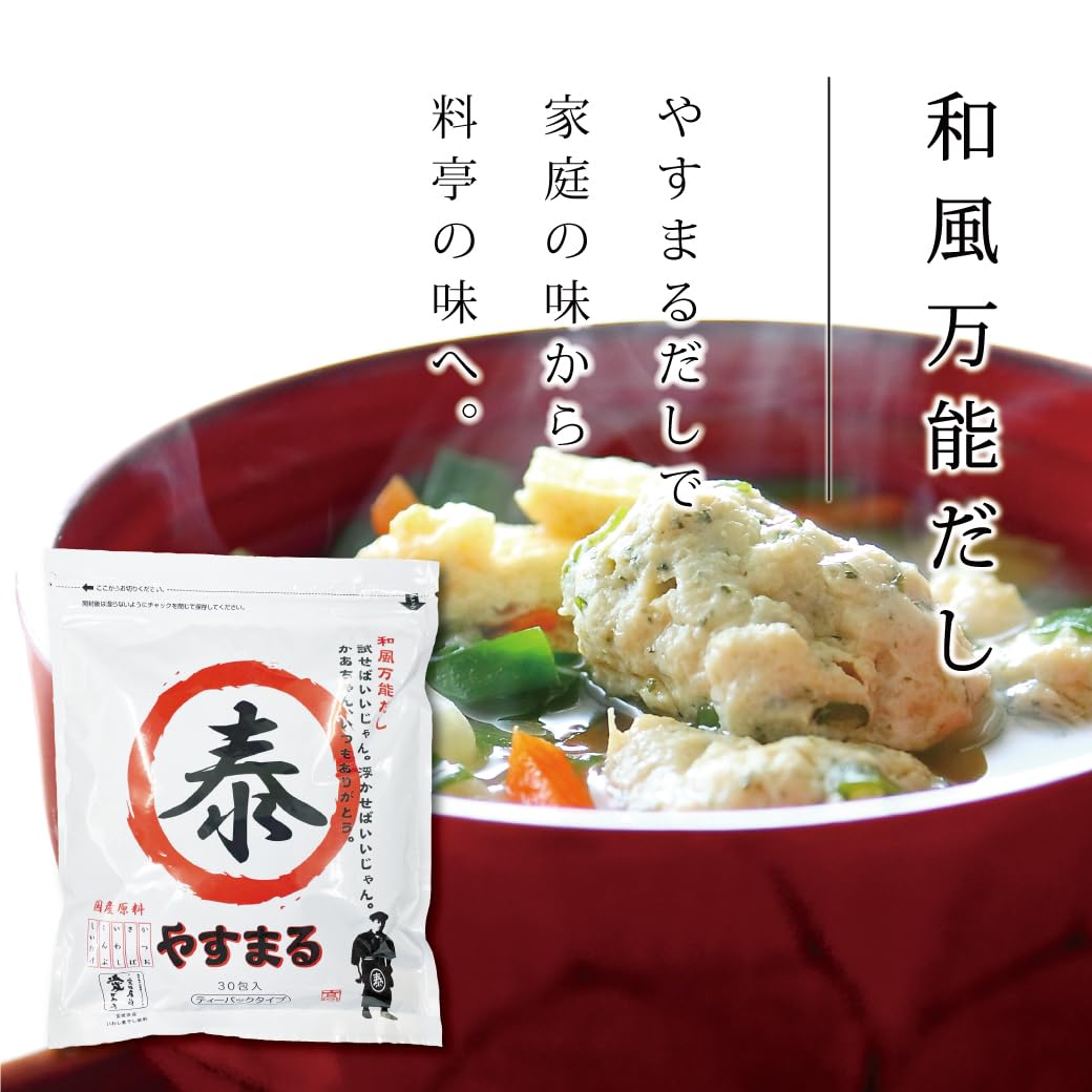 国産原料にこだわり選び抜いた素材、かつお、いわし、さば、こんぶ、しいたけの5種類を使いどんな料理にも使えるこだわりの万能だしです。合成保存料、人口甘味料、合成着色剤は使用しておりません。パックでそのままだしがとれます。また、パックをやぶって中身を料理にふりかけて調味料としてしっかりとした味付けもできます。