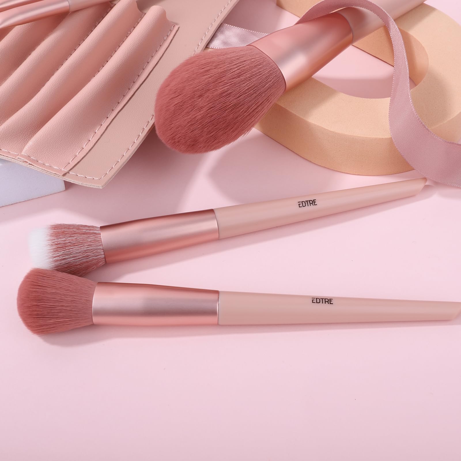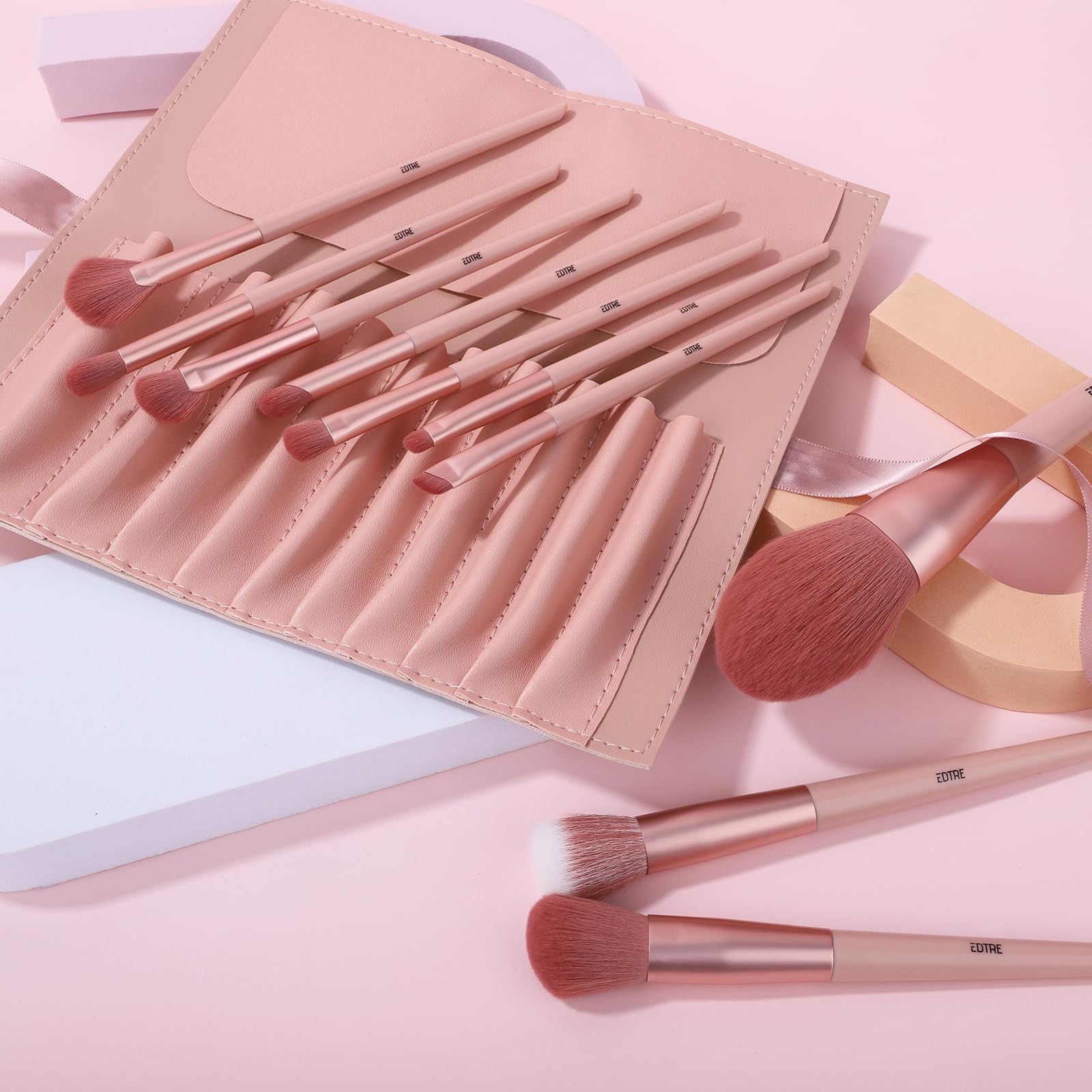 【プロ化粧師推薦】EDTRE メイクブラシ 10本セット 柔らかい 可愛い 多機能化粧ブラシ メイク初心者 粉含み力 敏感肌適用 PU皮革の収納ポーチ 携帯便利 スポンジパフ付き (桜シリーズ)