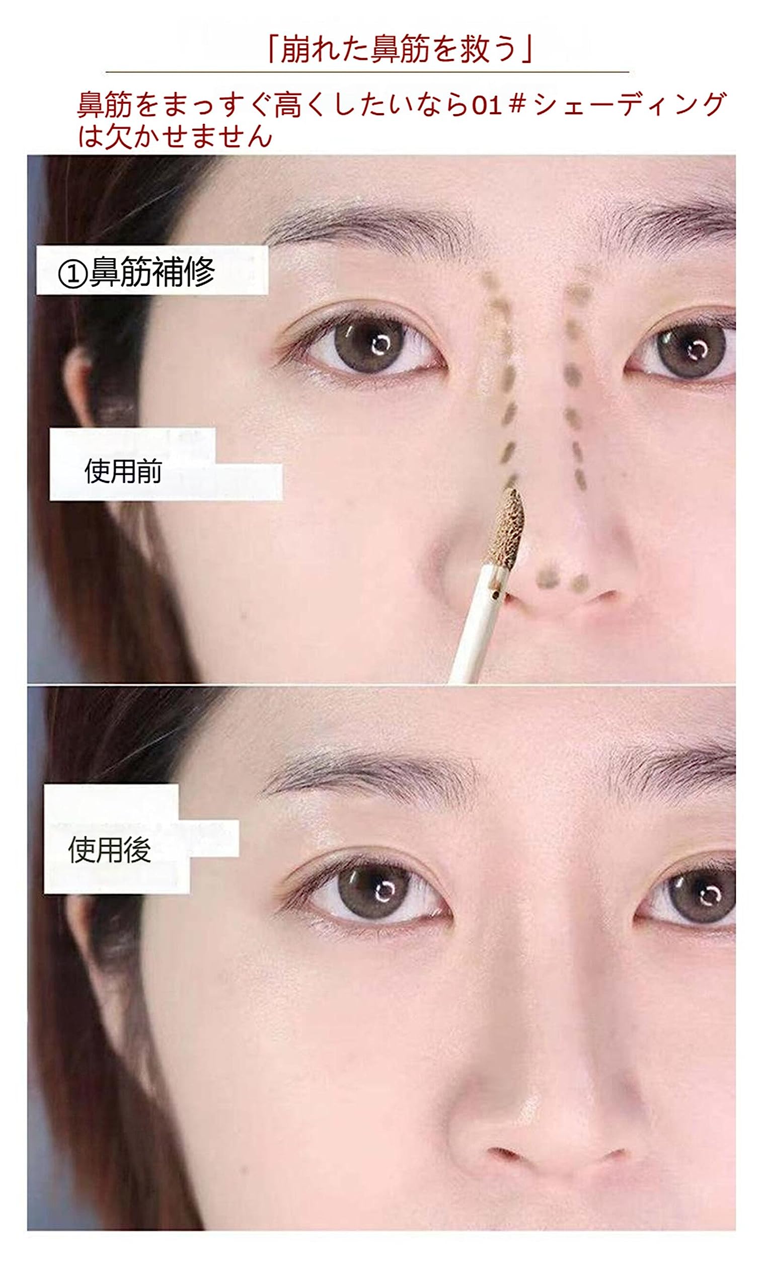 輪郭や鼻筋を強調することで、立体顔効果も期待できます。