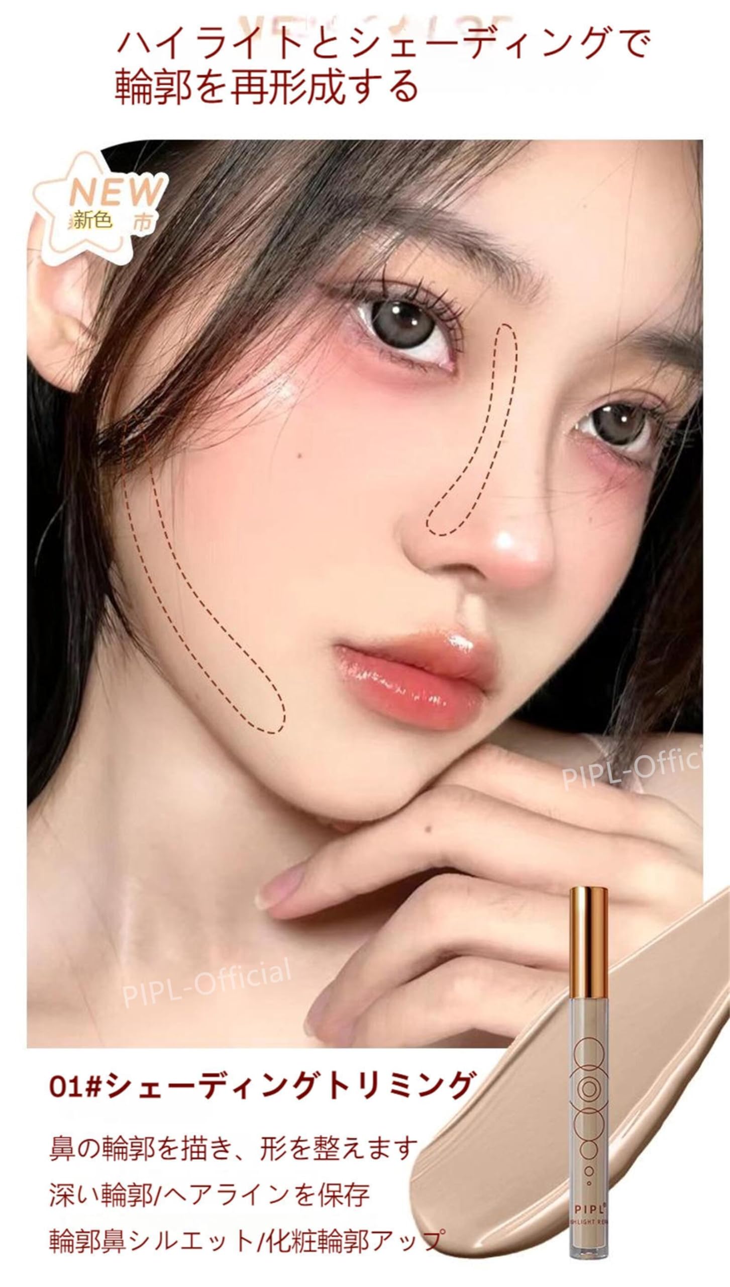 PIPL 立体創造 シェーディング ハイライト リキッド スティック ノーズシャドウ 輪郭 マットハイライト コンシーラー 自然メイク 小顔 立体顔マット 鼻筋 初心者コスメ (01# シェーディングトリミング)