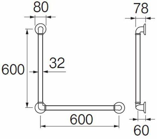 SANEI(サンエイ) 手すり L型ニギリバー トイレ・バス等 ビス・プラグ付き 白 W5792L-600X600