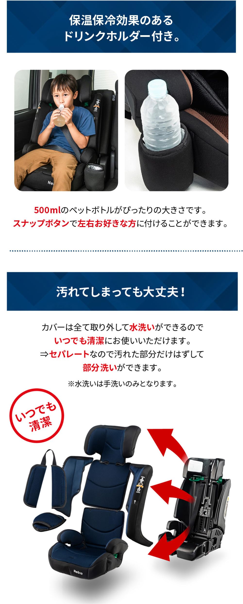 Nebio ネビオ チャイルドシート【R129適合/ISOFIX固定 15ヶ月から12歳 ロングユース 保温保冷ドリンクホルダー付き】ジュニアシート 長く使える 洗える 取付簡単 3way ポップピットG PoPPitG