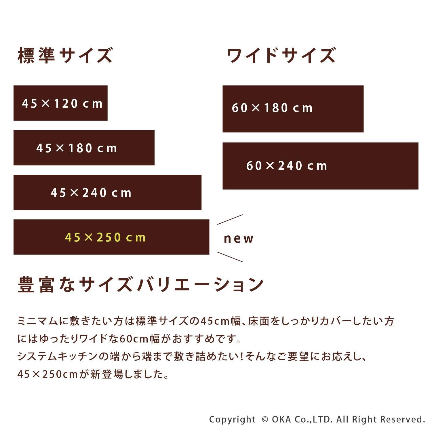 オカ(OKA) PLYS base (プリスベイス) キッチンマット 約 45 cm × 250 cm グレー (日本製 洗える モダン シンプル 滑り止め)