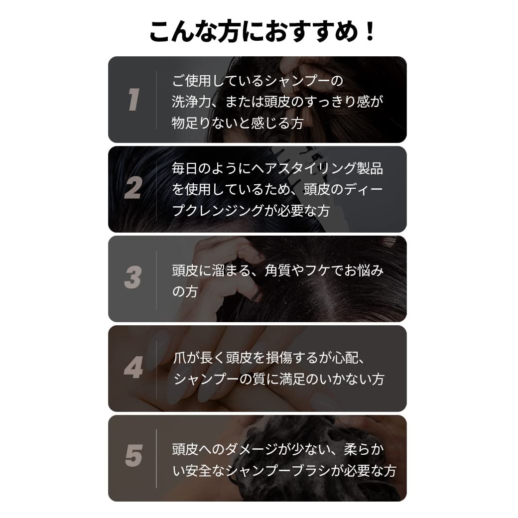 【シャンプーブラシもセットに】手だけでは洗いきれない毛穴の汚れが頭皮の毛穴に詰まると、フケやかゆみなどのトラブルが発生しやすくなります。シャンプーブラシを使用することで、毎日のシャンプーのクオリティがアップして、きれいな頭皮を保つことが出来ます。