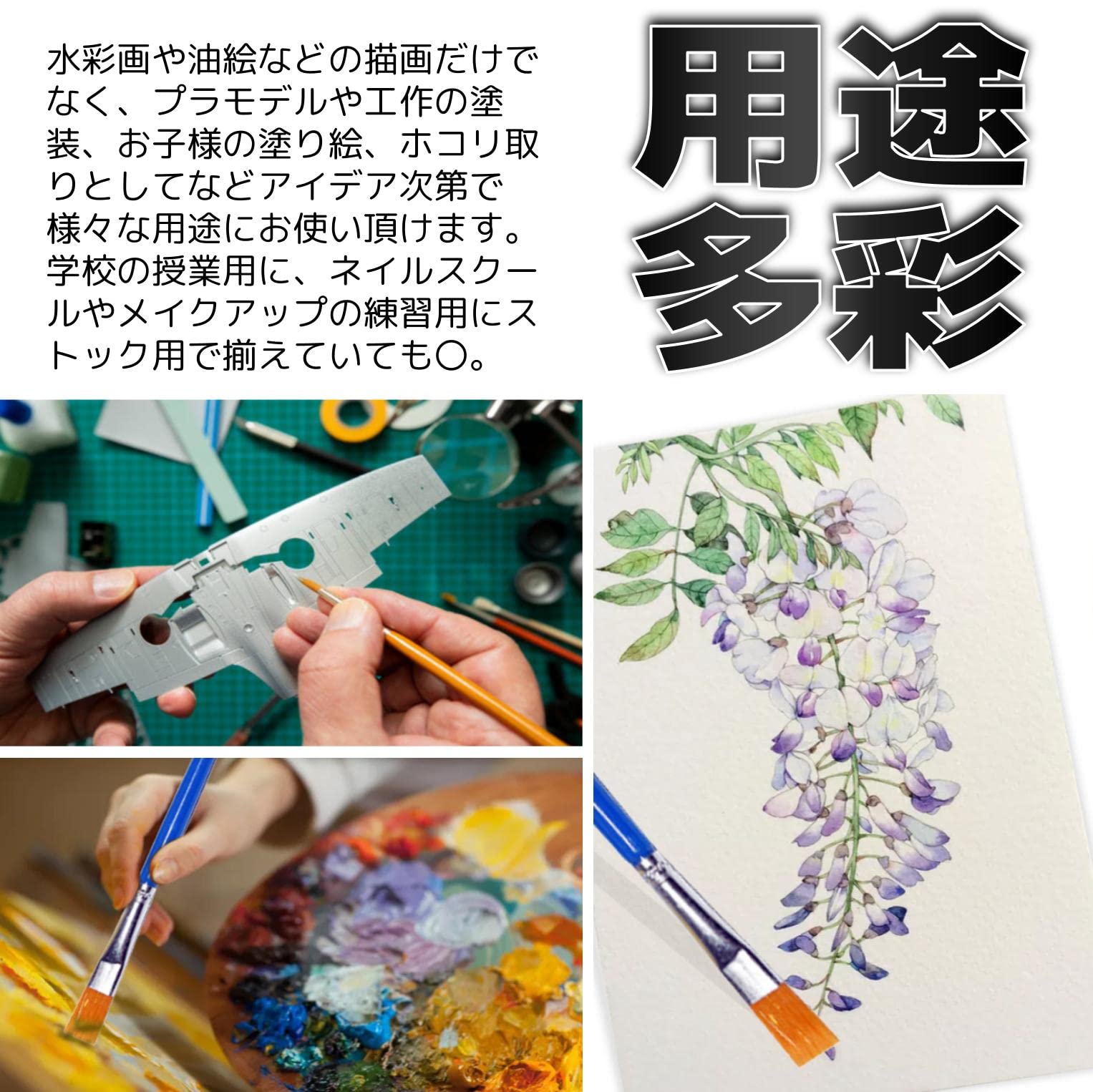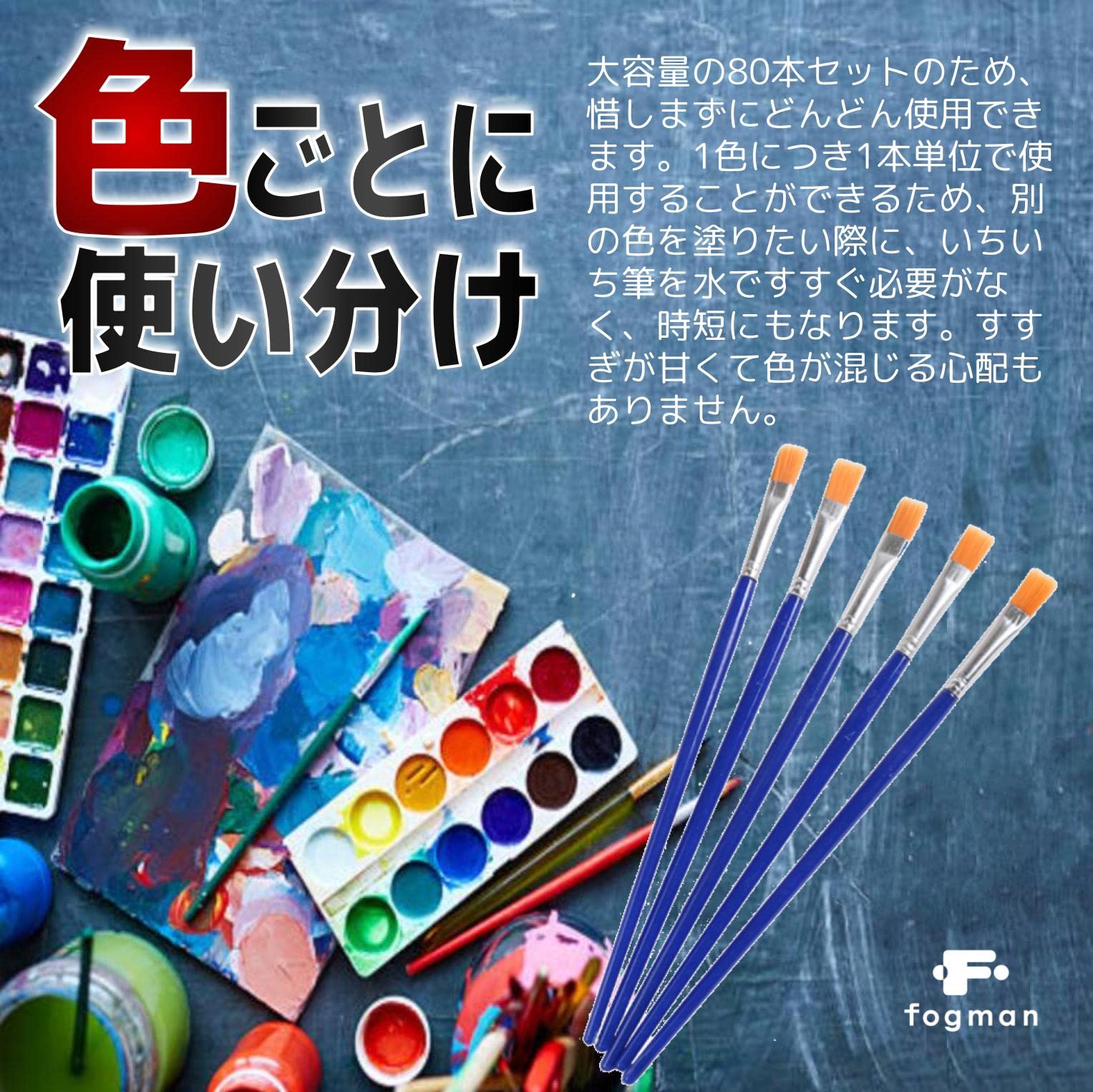 fogman 平筆 絵筆 大容量 使い捨て プラモデル 油絵 水彩画 フィギュア 80本セット(平筆)