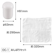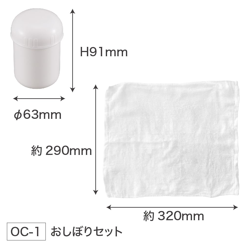 サイズ:(ケースサイズ)直径6.3×高さ9.1cm、(おしぼり)32×29cm
